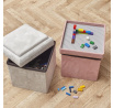 Izbu tvojho dieťaťa ovládli všadeprítomné kocky? Dochádzajú ti už nápady na ich bezpečné uloženie? Naša pufa je ideálnym riešením pre vás. Pufa Legina je estetický, moderný nábytok, ktorý sa najlepšie hodí do detskej izby. Toto mimoriadne pohodlné sedadlo je potiahnuté látkou v sivej farbe. Jeho horná časť je navyše pokrytá mäkkou penou, ktorá zvyšuje komfort používania. Pufa Legina skrýva niekoľko skrytých možností. Nielenže umožní oddýchnuť si po zábave vášmu dieťaťu. Je to tiež taký šikovný kontajner na ukladanie kociek typu Lego. Pufa sa otvára a odhaľuje dosku namontovanú pod vekom, ku ktorej je možné ľahko pripevňovať kocky. Nepoužívaný puf možno navyše zložiť - pri skladovaní teda zaberá naozaj málo miesta. Vyrobené z MDF dosky a čalúnnickej peny potiahnutej látkou.