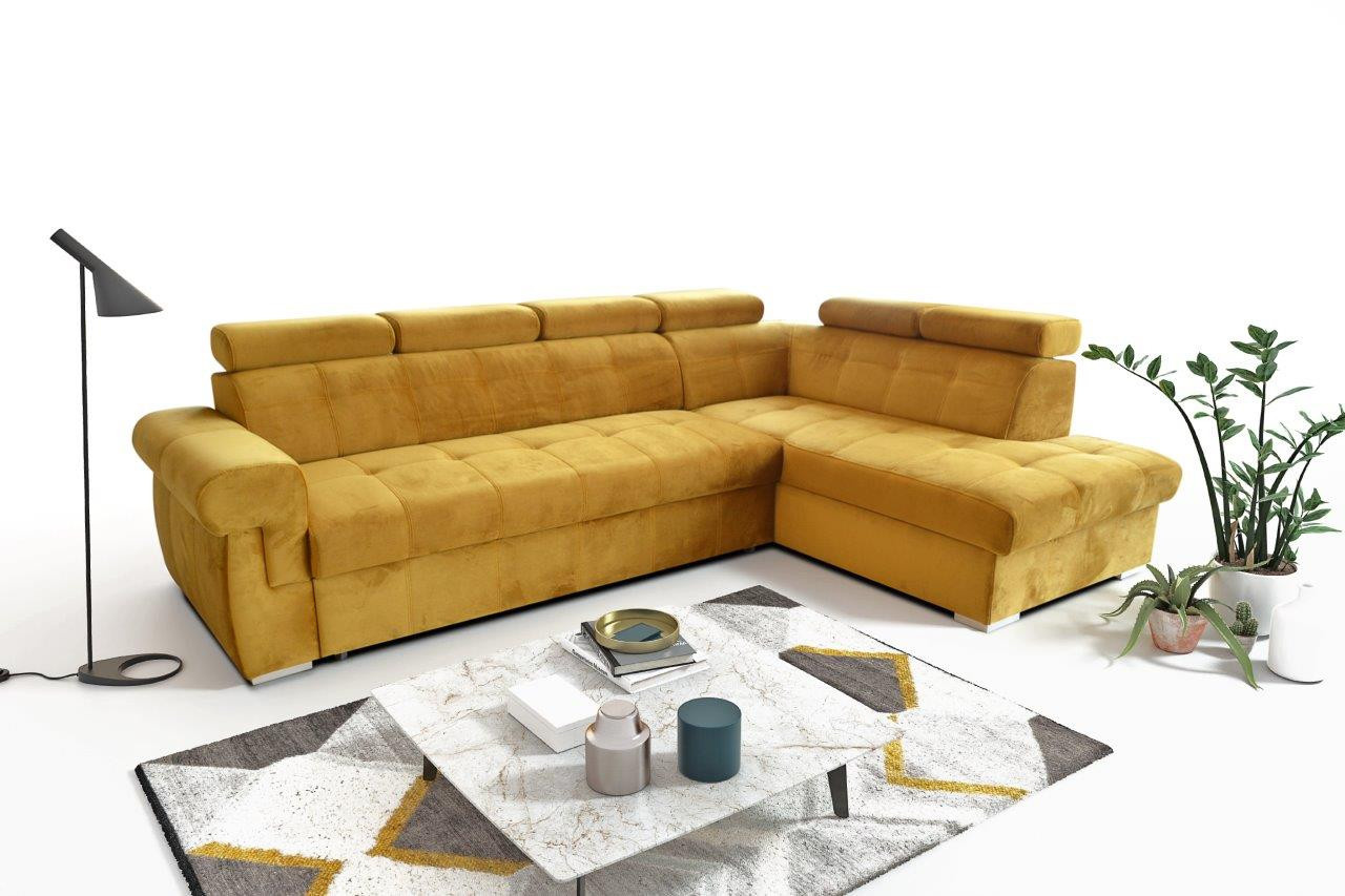 Pohodlná pohovka je jedným z najdôležitejších kusov nábytku v každej obývačke. Je to centrum na oddych po náročnom dni alebo na posedenie s rodinou či priateľmi, a preto musí byť pohodlné a praktické. Ponúkame vám sedacie súpravy Amadeus, ktoré sú ideálnou kombináciou pohodlia, praktickosti a moderného dizajnu. Táto sedacia súprava priamo nabáda k odpočinku, napríklad. sledovanie televízie. Opohodlie pri sedení sa stará čalúnenie sedadla, ktoré tvoria vlnité pružiny v kombinácii s kvalitnou HR penou, ako aj sklápacie podrúčky, ktoré sa dajú nastaviť podľa potreby. Praktickým aspektom je možnosť rozvinutia. Po rozložení vznikne dostatočne veľká posteľ, na ktorú sa zmestí aj príležitostná návšteva na noc. Samozrejme, k dispozícii je aj veľký úložný priestor, ktorý môžete využiť na posteľnú bielizeň. Sedacia súprava je k dispozícii v ľavej a pravej verzii. Zobrazené príslušenstvo a dekorácie nie sú zahrnuté v cene pohovky.