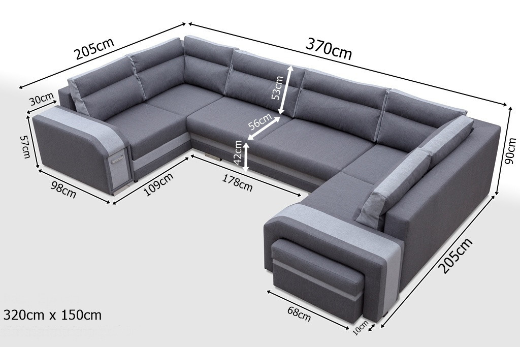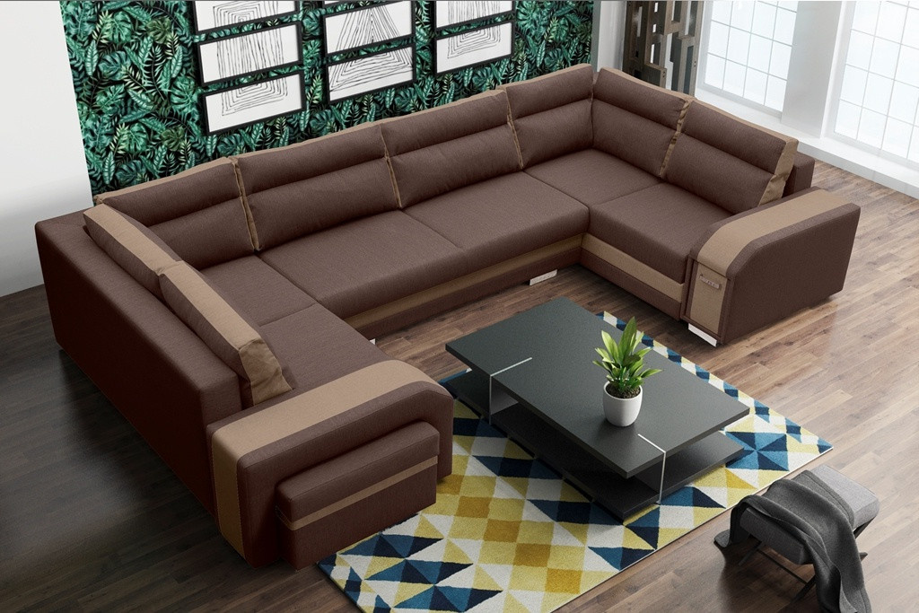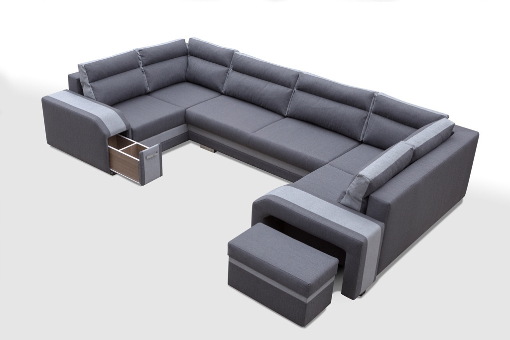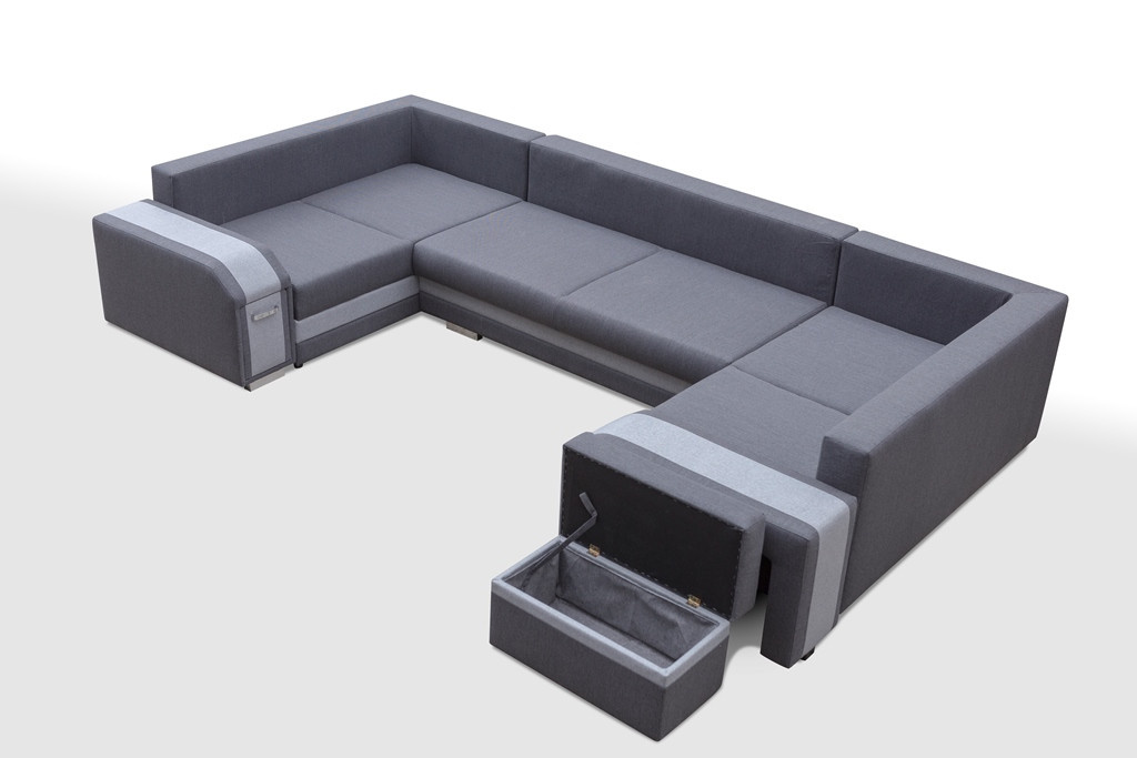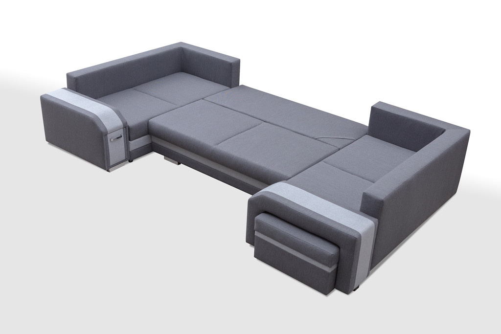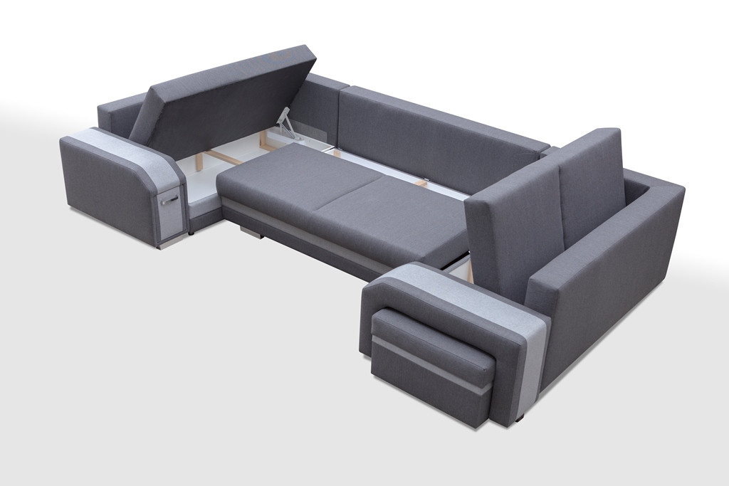 Pohovka Association v tvare písmena U osloví každého, kto uprednostňuje moderný vzhľad, pohodlie a praktickosť. Pohovka je veľmi pohodlná a dostatočne veľká na posedenie s priateľmi alebo rodinou. V prípade, že návšteva zostane cez noc, je pohovka vybavená rozkladacou pohovkou. Pomocou automatu jednoducho premeníte rozkladaciu pohovku na priestrannú posteľ. Pohovka má 3 praktické úložné priestory a ďalší úložný priestor sa nachádza v podrúčke, kde je dômyselne ukrytá tyč, a tiež v taburete. Sedáky sú vyplnené kombináciou pružín faliste a kvalitnej PUR peny. Návod na rozloženie si môžete pozrieť v krátkom gifu, ktorý nájdete v doplnkových fotografiách, kde nájdete aj fotografiu s podrobnými rozmermi. Sedacie súpravy ponúkame v kvalitnej poťahovej látke so zaujímavým čalúnením v niekoľkých farbách. Sedacie súpravy ponúkame v ľavom a pravom prevedení alebo tiež v tvare L. Pohovka bude dodaná v kombinácii poťahových látok zobrazených na úvodnej fotografii. Zobrazené dekorácie nie sú zahrnuté v cene.