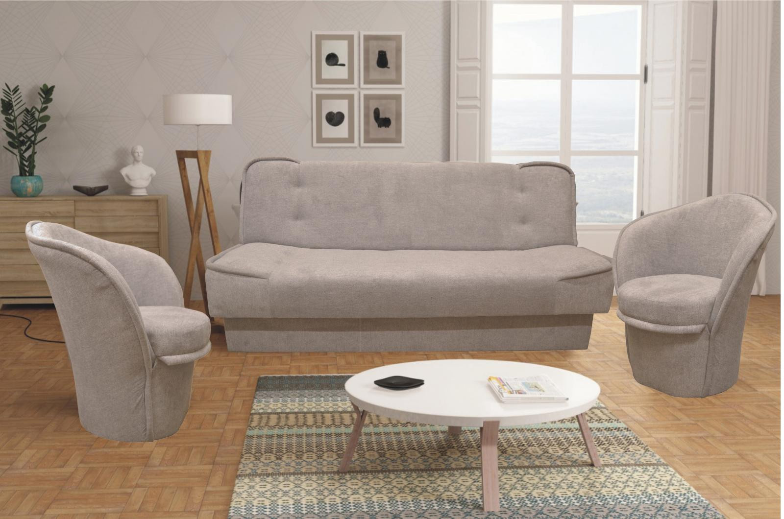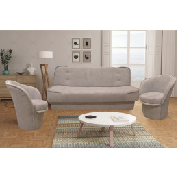 Sedacia súprava Brenda je vyrobená v jednoduchom, ale nadčasovom dizajne, ktorý sa hodí do každého interiéru. Vďaka svojim rozmerom nezaberá veľa miesta a je vhodný do malých miestností. Výplň sedadla pohovky tvorí kombinácia bonellových pružín s kvalitnou PUR penou. Pohovka je rozkladacia a samozrejme je tu aj nepostrádateľný úložný priestor. Jednoduchým rozložením pomocou systému click-clack sa vytvorí posteľ na príležitostné spanie. Kreslá obsahujú úložný priestor, ktorý je nevyhnutný v každej domácnosti, najmä v malých bytoch. Môžete si vybrať z niekoľkých módnych odtieňov. Uvedená cena je za pohovku a 2 kreslá. Ostatné zobrazené príslušenstvo a dekorácie nie sú súčasťou balenia. Zobrazenie farieb na fotografii sa môže líšiť od skutočnosti.