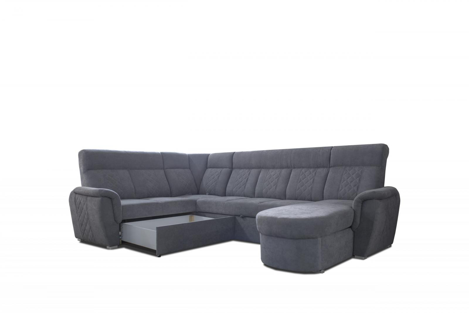 Pohodlná priestranná sedacia súprava je vyrobená z kombinácie pružín a kvalitnej PUR peny. Je čalúnená veľmi príjemnou poťahovou látkou. Pohovka je rozkladacia a jej jednoduchým rozložením vznikne priestranné lôžko na príležitostné spanie. Súčasťou je veľký úložný priestor . Sedadlo má dve nastaviteľné operadlá, vďaka ktorým je ležanie pred televízorom ešte pohodlnejšie. Pohovka má dostatočne vysoké operadlo a sedí sa na nej veľmi pohodlne. sedadlo bude dodané ako na úvodnom obrázku v ľavej verzii (ostatné obrázky sú len ilustračné). Túto sedacie súpravu ponúkame aj v opačnom prevedení. Tovar sa dodáva v rozloženom stave na palete.
