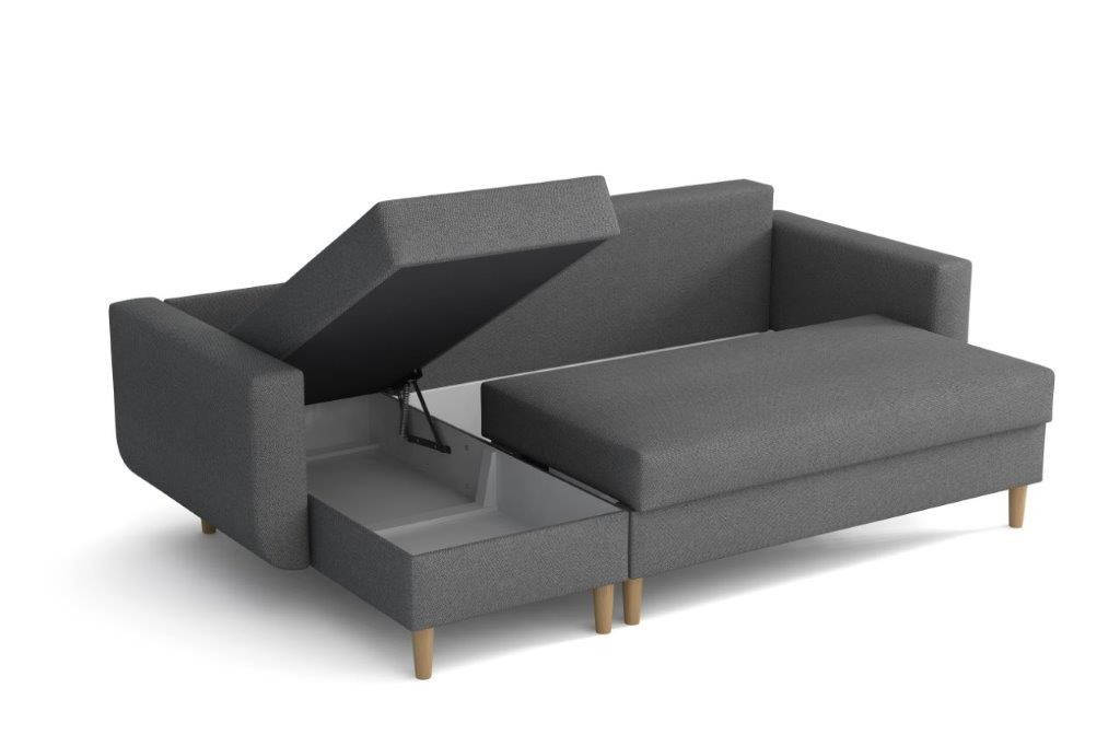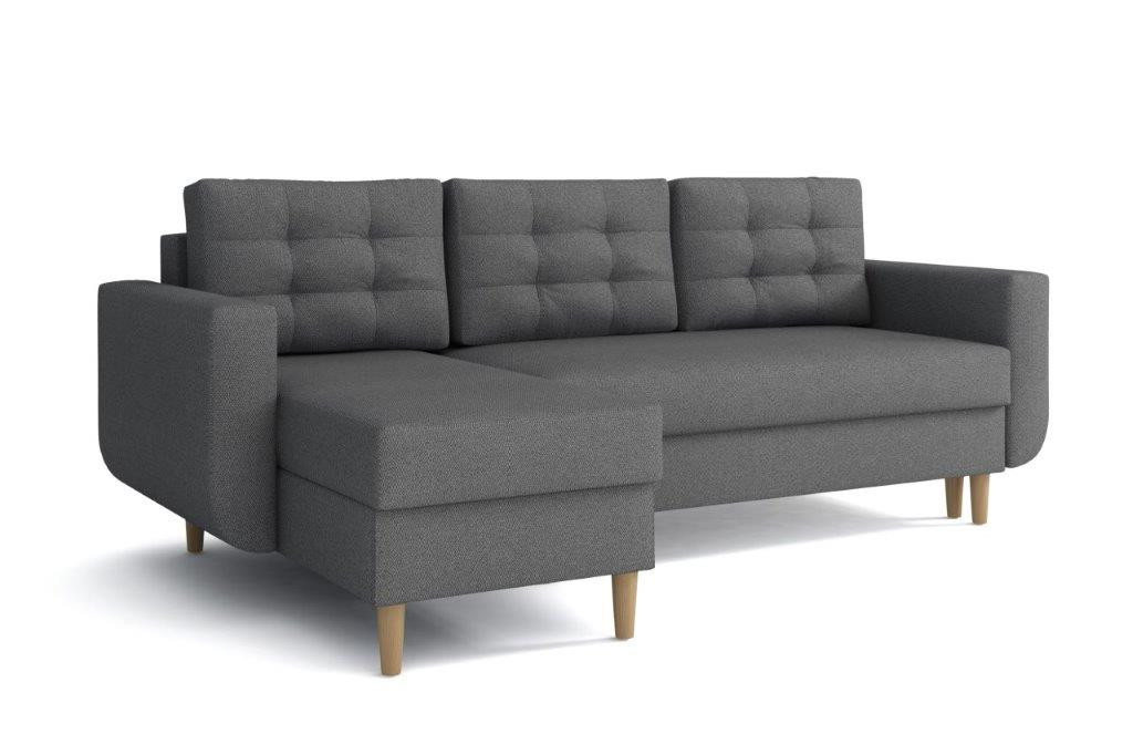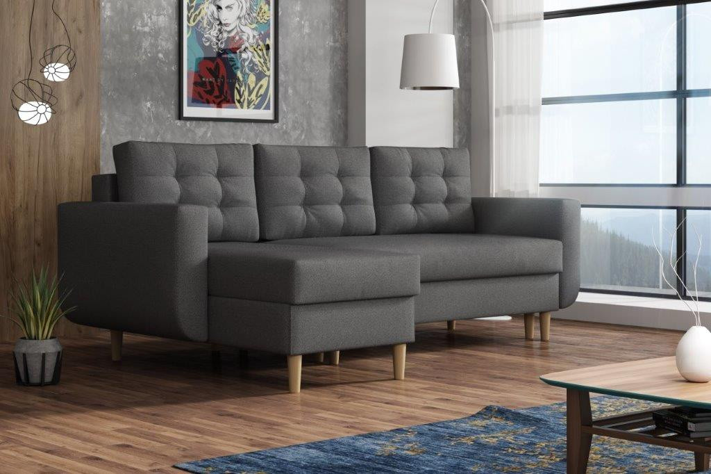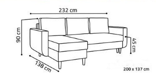 Sedacia súprava Edita je krásny dizajnový kúsok RETRO, ktorý sa dokonale hodí do moderných aj klasických interiérov. Retro dizajn podčiarkujú drevené nohy a ťahy na zadných vankúšoch. Jeho veľkou výhodou je pohodlie, praktickosť a univerzálne použitie. teda. že si ho môžete nastaviť ako ľavák alebo pravák, čo je výhoda pri zariaďovaní obývačky. Nemusíte premýšľať, do ktorého rohu pohovku umiestnite, jednoducho ju nastavíte podľa potreby. Pohovka je rozkladacia a môžete ju použiť na príležitostné prenocovanie návštev. Samozrejmosťou je aj praktický úložný priestor, ktorý sa nachádza v oboch častiach sedadla a dá sa využiť napríklad na odkladanie vecí. na posteľnú bielizeň. Pohovka je čalúnená látkou a je k dispozícii v niekoľkých módnych farbách. Sedáky sú vyplnené kombináciou bonellových pružín a vysokokvalitnej PUR peny, čo zaručuje veľmi pohodlné sedenie. Výška nôh pohovky je 13 cm. Pohovka je vhodná aj do menších miestností. Zobrazené príslušenstvo a dekorácie nie sú súčasťou balenia. Farby výrobku zobrazené na fotografii sa môžu mierne líšiť od skutočnosti.