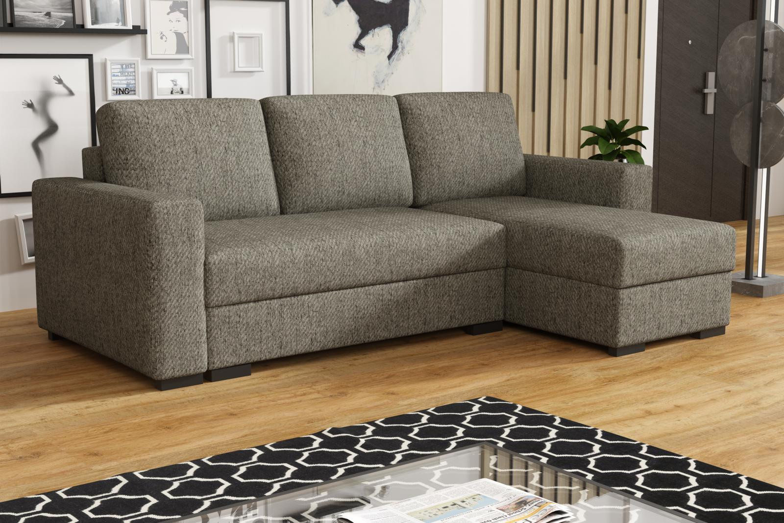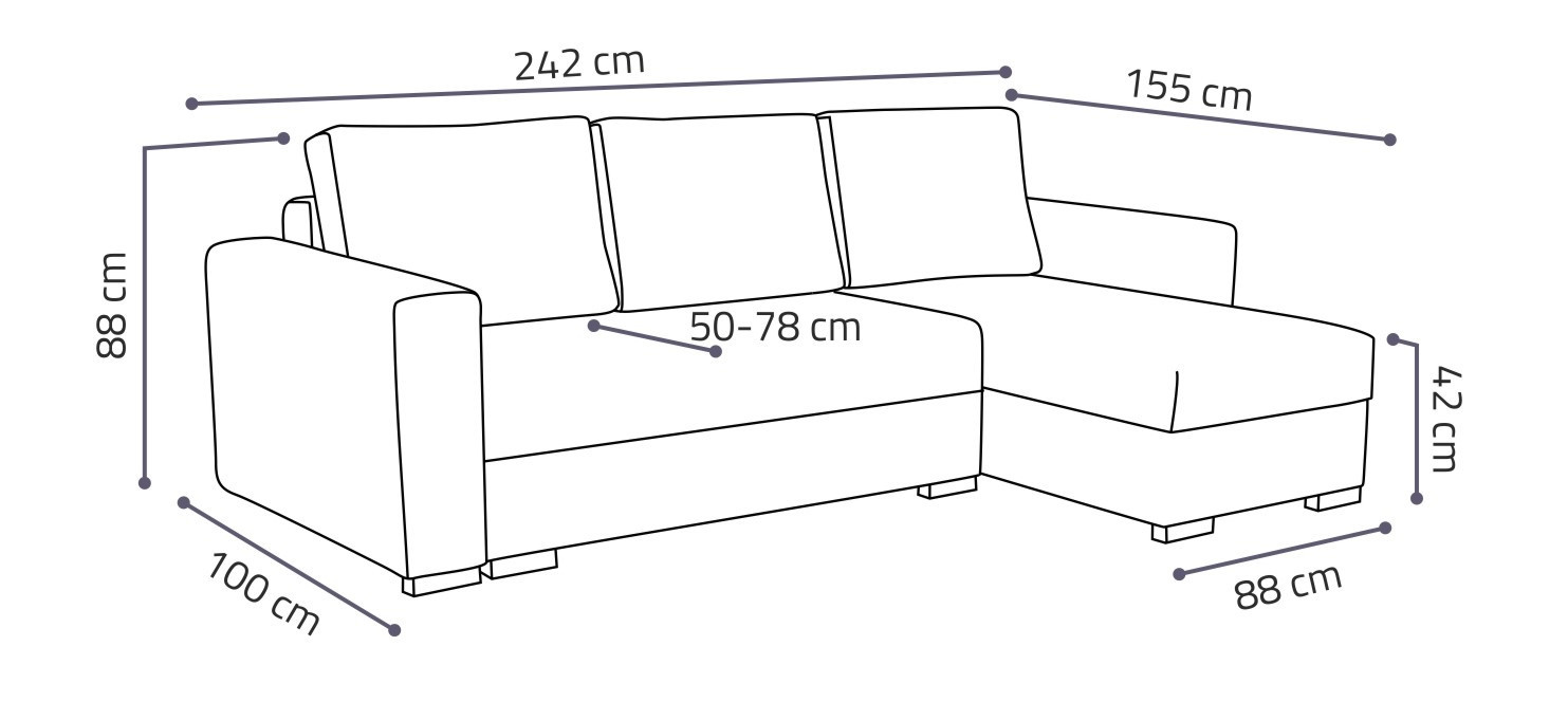 Loreta je moderná rohová pohovka s nadčasovým dizajnom. Jeho výhodami sú pohodlie, praktickosť a všestrannosť. podľa potreby ho môžete nastaviť ako ľavostranný alebo pravostranný, čo je výhodou pri zariaďovaní obývačky. Nemusíte premýšľať, do ktorého rohu pohovku umiestnite, jednoducho ju nastavíte podľa potreby. Pohodlie pri sedení zaisťuje kombinácia pružín faliste s kvalitnou PUR penou a veľkými opornými vankúšmi, ktoré sú odnímateľné, takže si ich môžete prispôsobiť svojim potrebám. praktickým aspektom pohovky je úložný priestor a možnosť jej rozloženia na príležitostné prenocovanie. Pohovka je čalúnená jednofarebnou látkou a v ponuke je viac farebných variantov. Súčasťou pohovky sú 3 veľké podporné vankúše. Ostatné zobrazené dekorácie nie sú súčasťou balenia. Správna farba poťahovej látky je znázornená na prvej fotografii. Ostatné fotografie sú len ilustračné.