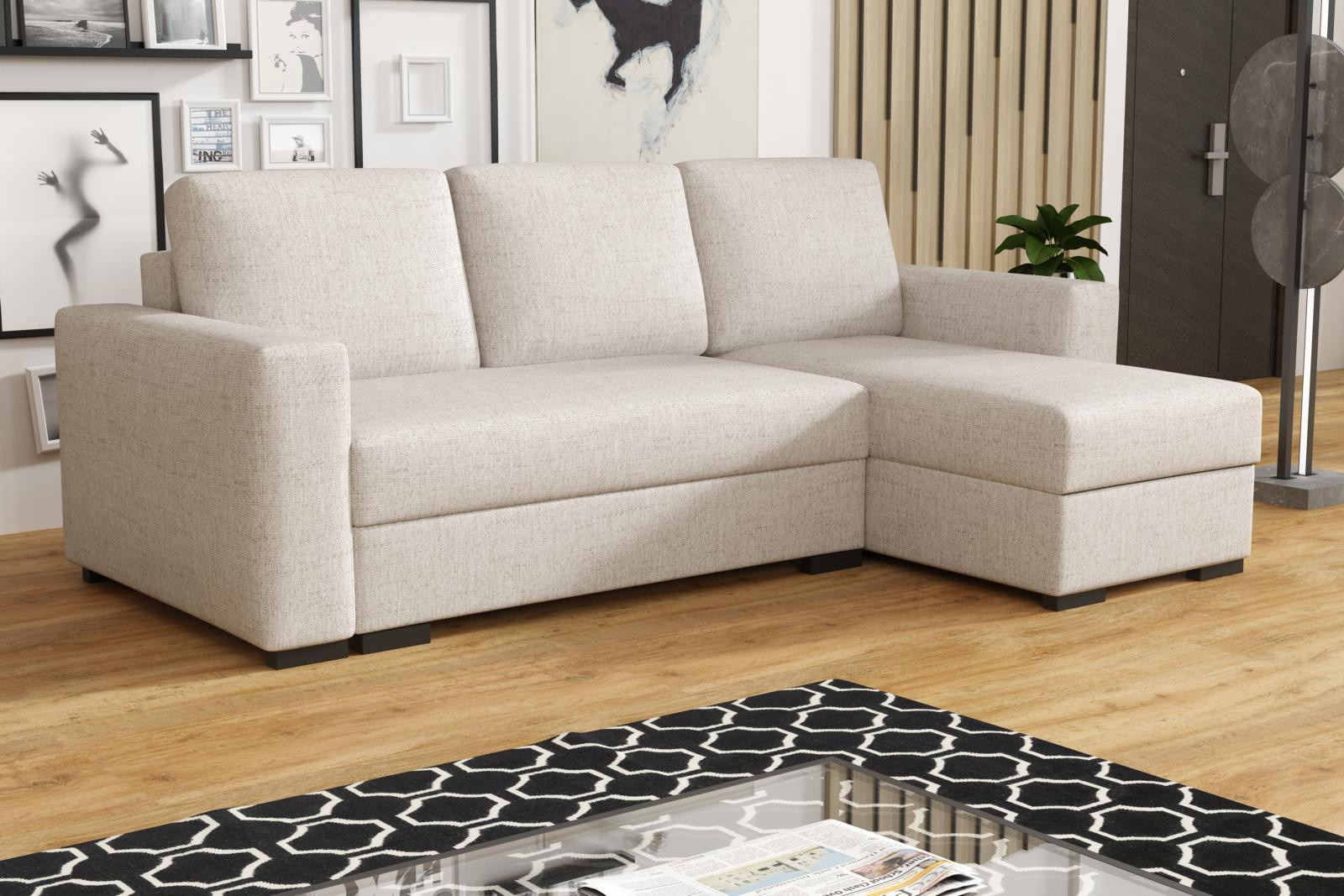 Loreta je moderná rohová pohovka s nadčasovým dizajnom. Jeho výhodami sú pohodlie, praktickosť a všestrannosť. podľa potreby ho môžete nastaviť ako ľavostranný alebo pravostranný, čo je výhodou pri zariaďovaní obývačky. Nemusíte premýšľať, do ktorého rohu pohovku umiestnite, jednoducho ju nastavíte podľa potreby. Pohodlie pri sedení zaisťuje kombinácia pružín faliste s kvalitnou PUR penou a veľkými opornými vankúšmi, ktoré sú odnímateľné, takže si ich môžete prispôsobiť svojim potrebám. praktickým aspektom pohovky je úložný priestor a možnosť jej rozloženia na príležitostné prenocovanie. Pohovka je čalúnená jednofarebnou látkou a v ponuke je viac farebných variantov. Súčasťou pohovky sú 3 veľké podporné vankúše. Ostatné zobrazené dekorácie nie sú súčasťou balenia. Správna farba poťahovej látky je znázornená na prvej fotografii. Ostatné fotografie sú len ilustračné.