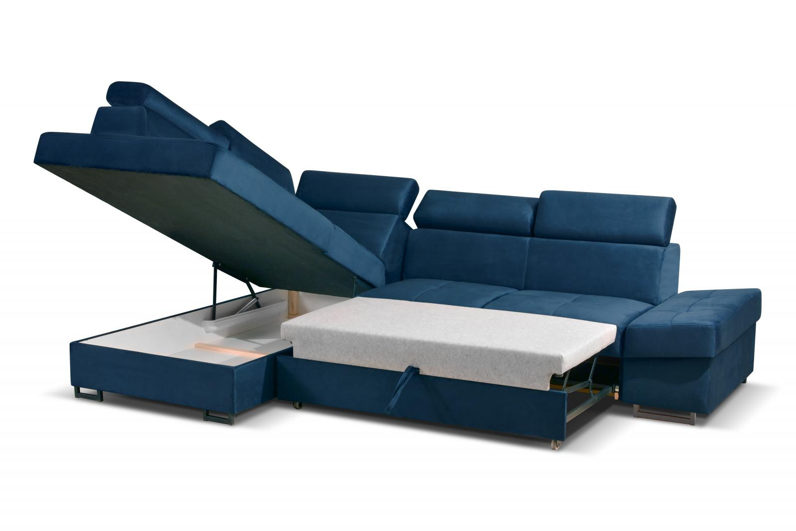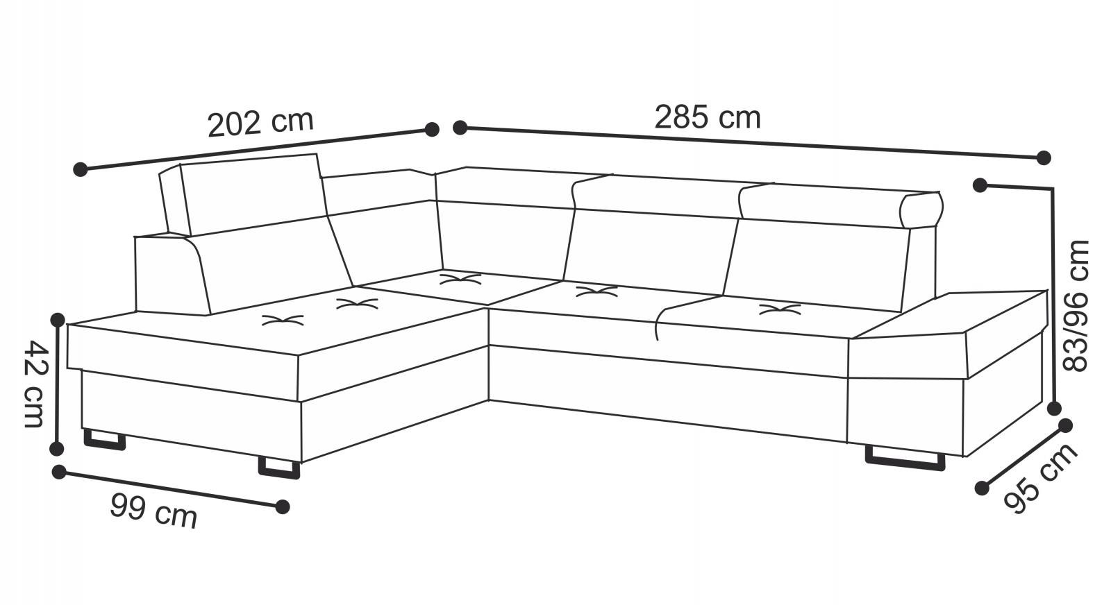 Sedacia súprava Maik osloví každého, kto uprednostňuje moderný vzhľad a zároveň pohodlie a praktickosť. v prípade, že návšteva zostane cez noc, je pohovka vybavená rozkladacím gaučom, vďaka ktorému sa dá ľahko premeniť na priestrannú posteľ. Pohovka má praktický úložný priestor, ktorý môžete využiť napríklad.na posteľnú bielizeň. Pohodlie pri sedení zabezpečuje výplň sedacích vankúšov, ktorú tvorí kombinácia pružín faliste s kvalitnou PUR penou. Komfort a pohodlie pri odpočinku zvyšuje sklápacia opierka hlavy. Sedacia súprava je k dispozícii v ľavej a pravej verzii. Zobrazené príslušenstvo a dekorácie nie sú zahrnuté v cene pohovky. zobrazenie farieb na fotografii sa môže mierne líšiť od skutočnej farby. Fotografie rozkladacej pohovky sú len ilustračné.