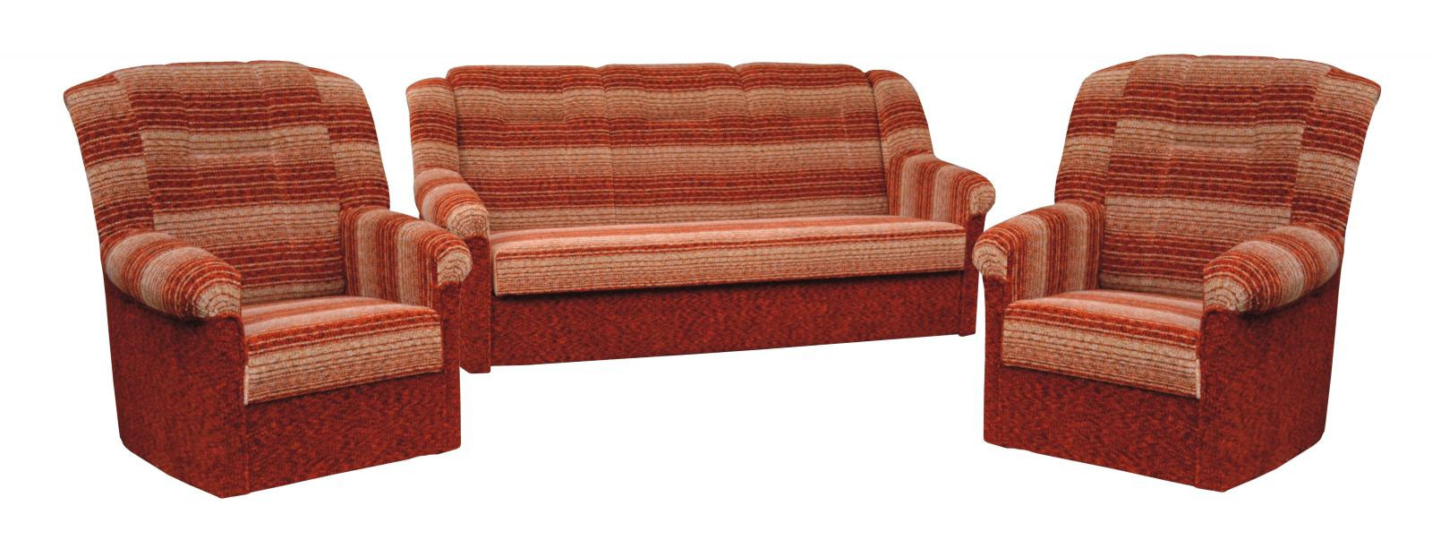 Klasická sedacia súprava Panda je vďaka svojim rozmerom vhodná aj do menších miestností. Sedacia súprava je rozkladacia a samozrejme má praktický úložný priestor. jednoduchým rozložením postele pomocou systému "klik klak" vznikne posteľ vhodná na príležitostné spanie. Pohovka má pružinové jadro a je potiahnutá kvalitnou a veľmi príjemnou poťahovou látkou. Sedacie súpravy ponúkame vo viacerých farbách.