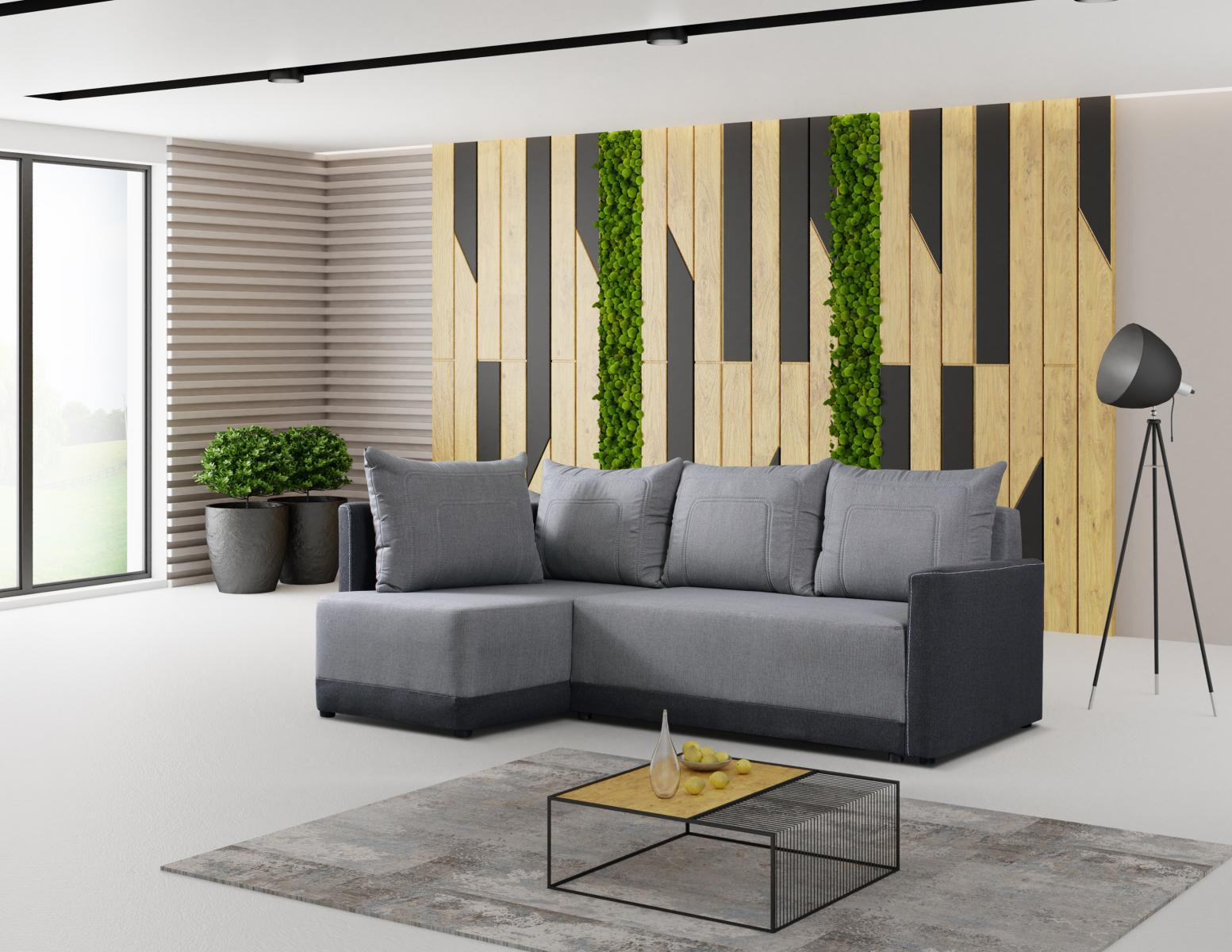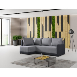 Moderná rohová sedacia súprava vás zaujme svojím jednoduchým dizajnom. Súčasťou sú vankúše, vďaka ktorým je pohovka veľmi pohodlná. Je praktická, rozkladacia časť sa dá použiť na príležitostné spanie, plocha lôžka je 137 x 203 cm. Vo vnútri pohovky sa nachádza úložný priestor, ktorý možno využiť na uloženie posteľnej bielizne. Výplň sedadla je vyrobená z kvalitnej stredne tvrdej peny a pružiny bonell. Tovar sa dodáva v demontovanom stave.