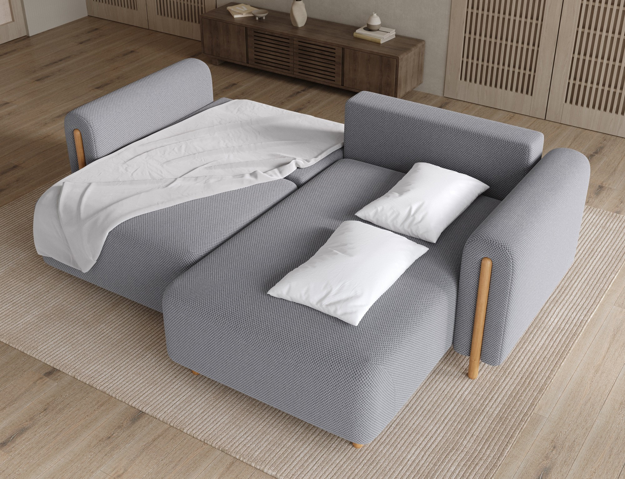 - Rozkladanie: Vďaka funkcii rozkladania sa sedacia súprava ľahko premení na pohodlné lôžko s plochou na spanie o rozmeroch 130x200 cm. Ideálne pre hostí alebo pre chvíle, keď si chcete dopriať oddych.