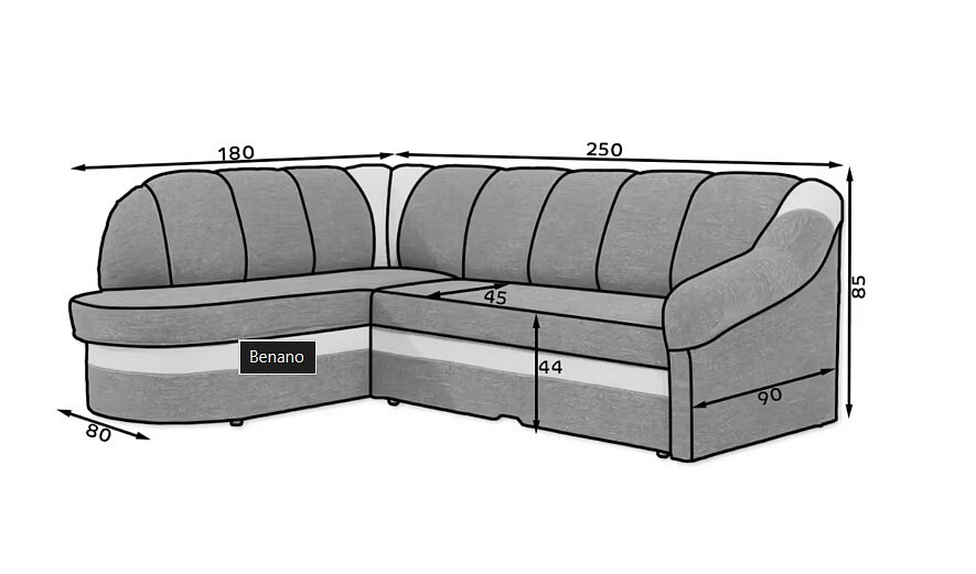So šírkou 250 cm a hĺbkou 180 cm ponúka sedacia súprava dostatok priestoru pre celú rodinu. Maximálna výška 85 cm a minimálna výška sedu 44 cm zabezpečujú pohodlné sedenie pre každého. Či už si chcete užiť večer s priateľmi alebo relaxovať po náročnom dni, Benano vám poskytne ideálne miesto na oddych.