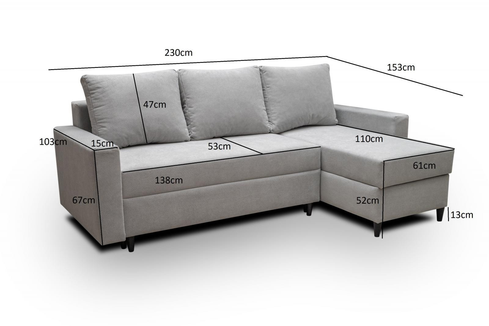 Carine je moderná rohová sedacia súprava s nadčasovým dizajnom. Jej prednosťou je pohodlie, praktickosť a univerzálne použitie. Môžete si ju podľa potreby zostaviť ako ľavú alebo pravú, čo je výhoda pri zariaďovaní obývacej izby. Nemusíte premýšľať do ktorého rohu postavíte sedaciu súpravu, jednoducho ju podľa potreby prispôsobíte. Pohodlie pri sedení zabezpečuje kombinácia pružín bonell s kvalitnou PUR penou a veľké oporné vankúše, ktoré sú odnímateľné, takže si ich môžete prispôsobiť svojim potrebám.Praktickou stránkou sedacej súpravy je úložný priestor a možnosť rozloženia na občasné prespanie Vašej návštevy. Sedacia súprava je potiahnutá kvalitnou látkou Mellow a ponúkame ju v niekoľkých odtieňoch. Správna farba sedacej súpravy je vyobrazená v úvodných fotografiách. Ostatné fotografie sú ilustračné.