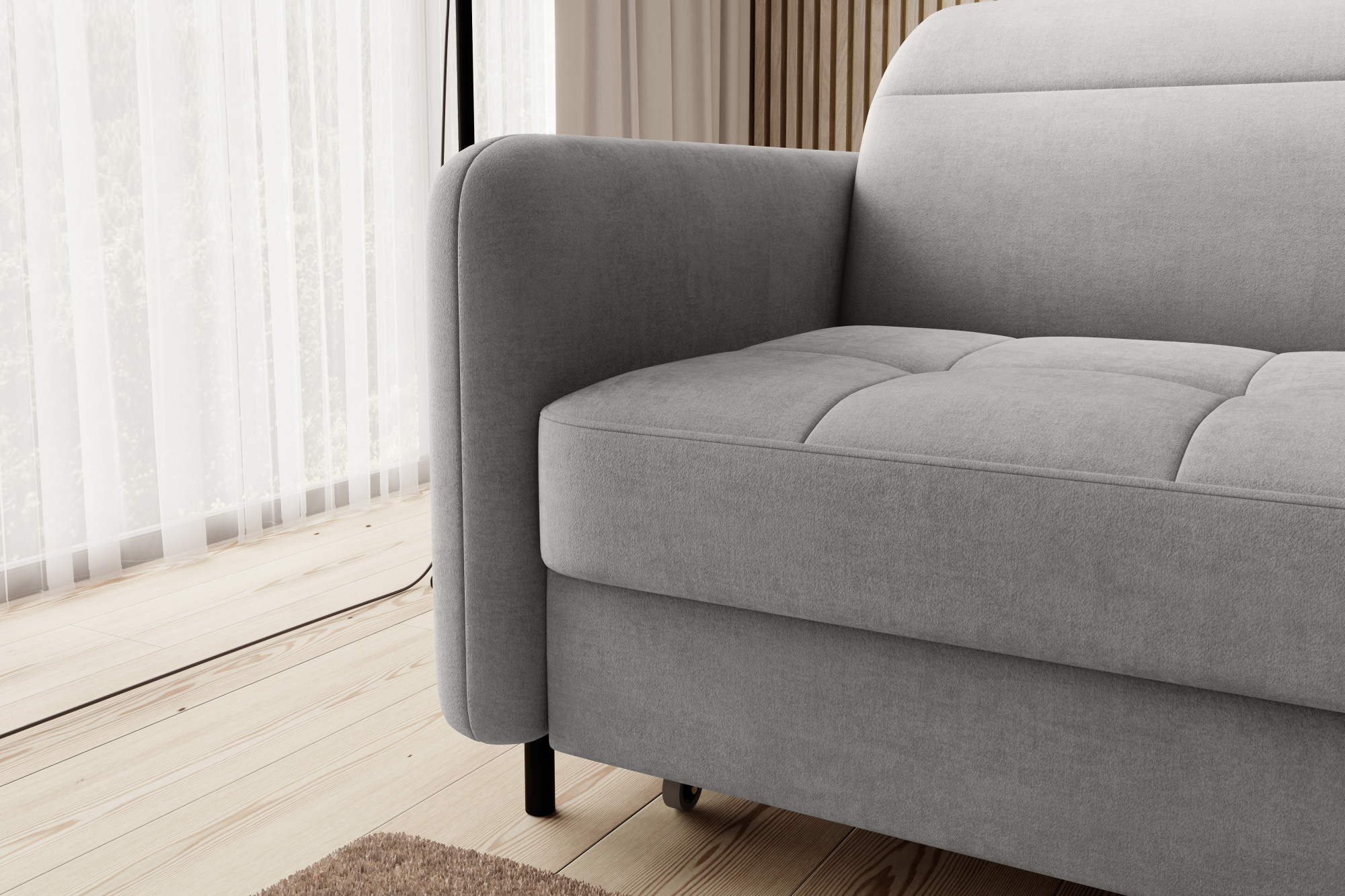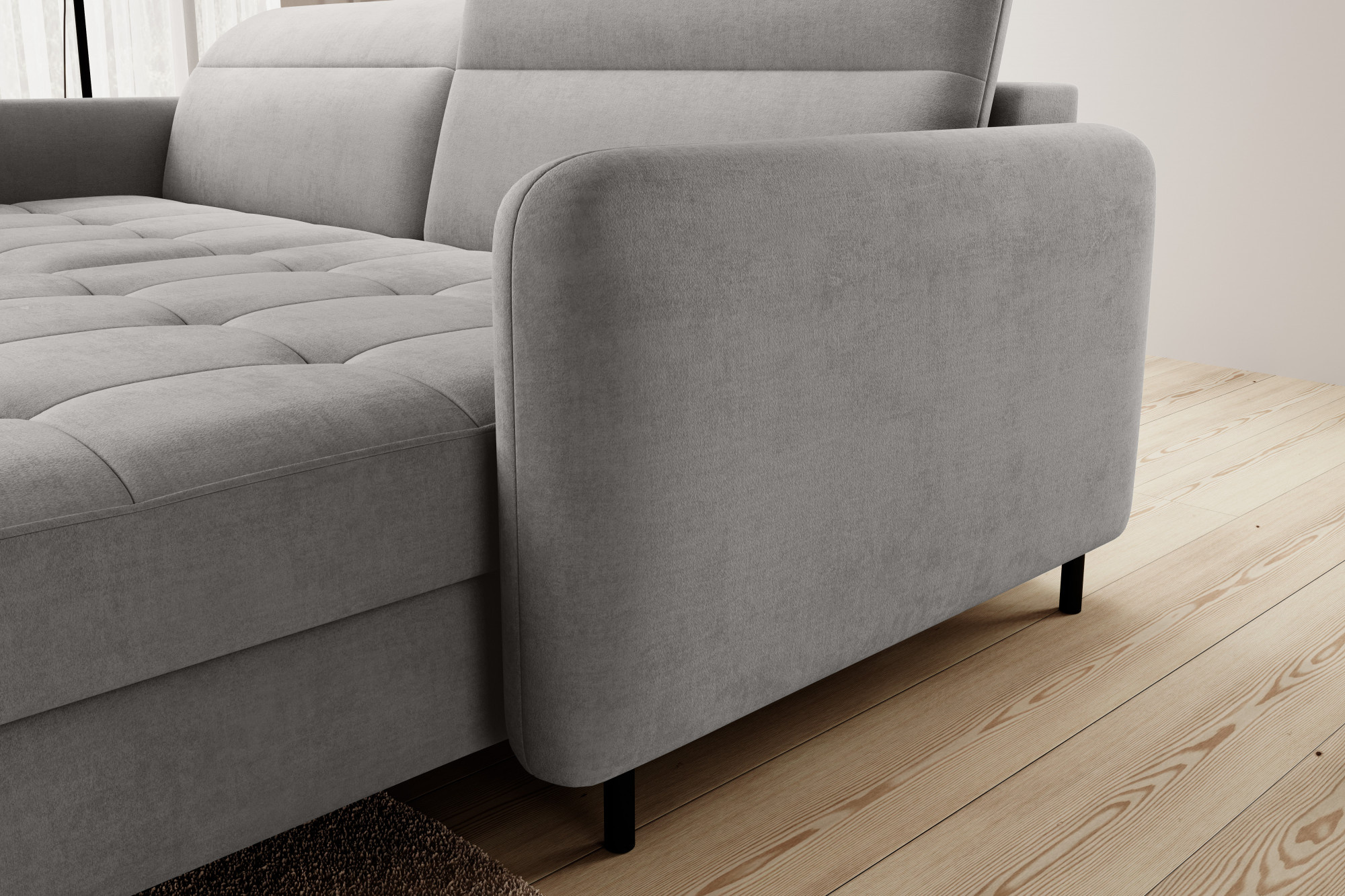 Táto rohová sedacia súprava je navrhnutá s ohľadom na vaše potreby. Disponuje praktickým úložným priestorom, ktorý vám umožní ľahko uschovať deky, vankúše alebo iné predmety, ktoré chcete mať po ruke, ale zároveň ich mať úhľadne upratané. Rozkladací mechanizmus premení sedaciu súpravu na pohodlné lôžko s plochou na spanie o rozmeroch 128 x 200 cm, čo je ideálne pre hostí alebo na príležitostné prespanie.