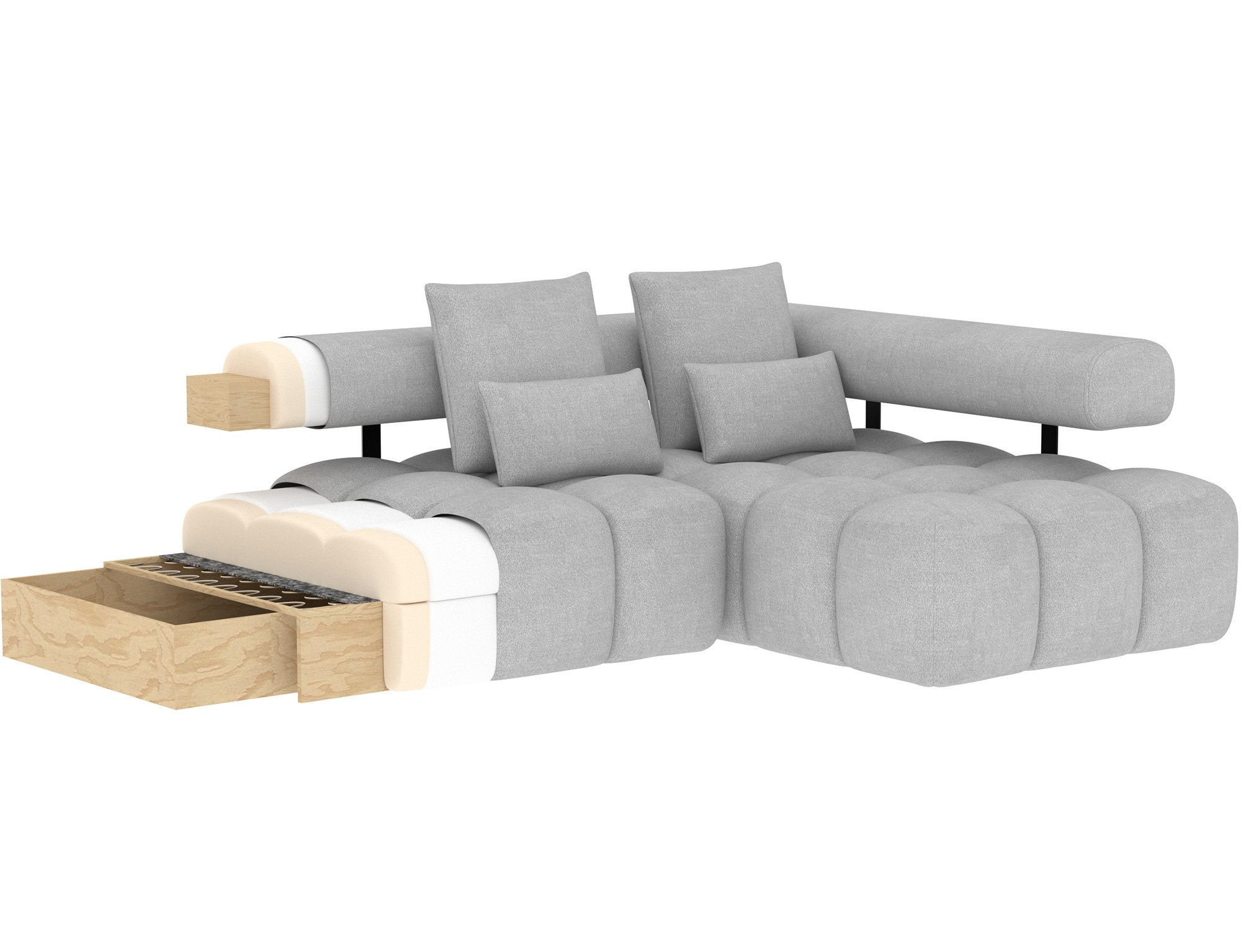 Ďalšou praktickou vlastnosťou je úložný priestor, ktorý je súčasťou tejto sedacej súpravy. Umožňuje vám ľahko uschovať deky, vankúše alebo iné predmety, ktoré chcete mať po ruke, ale zároveň ich nechcete mať na očiach. Tento priestor je nenápadne integrovaný do dizajnu súpravy, takže nenarušuje jej elegantný vzhľad.
