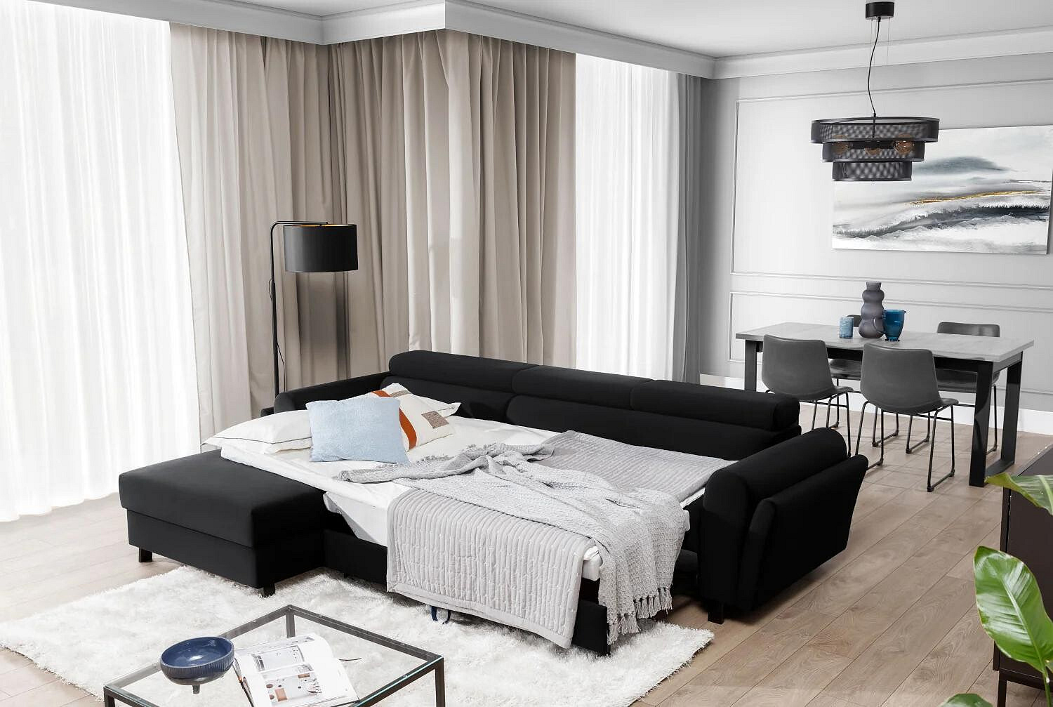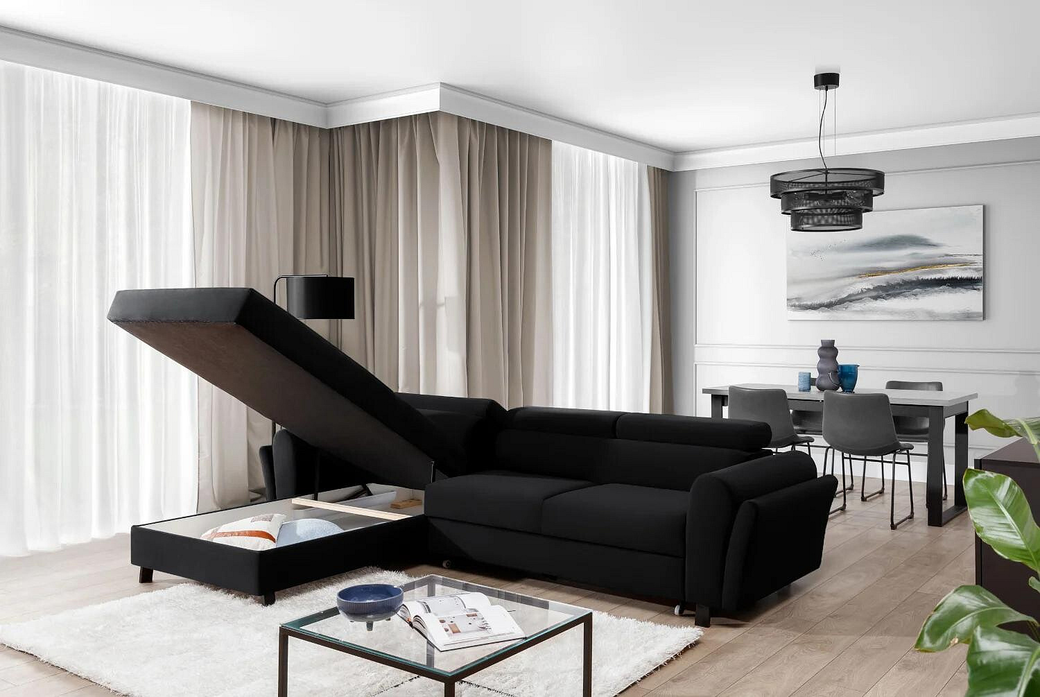 Jednou z hlavných predností tejto sedacej súpravy je jej praktická funkčnosť. Vďaka možnosti rozkladania sa ľahko premení na pohodlné lôžko s plochou na spanie 110x240 cm, čo je ideálne pre hostí alebo na príležitostné prespanie. Navyše je vybavená úložným priestorom, ktorý poskytuje dostatok miesta na uloženie posteľnej bielizne, vankúšov alebo iných potrebných vecí, čím pomáha udržiavať váš obývací priestor čistý a usporiadaný.