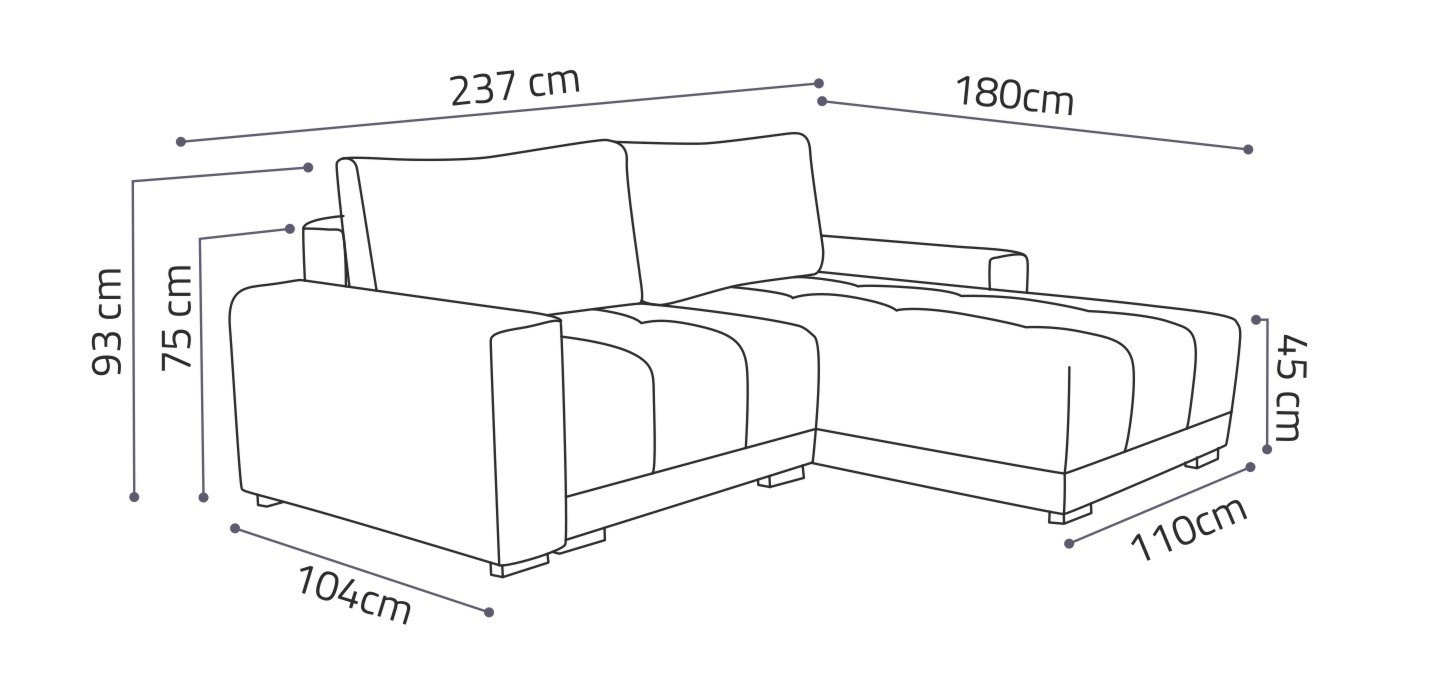 Pohovka Pilar je vyrobená v jednoduchých elegantných líniách, ktoré sa hodia do moderných aj klasických interiérov. Jeho veľkou výhodou je všestranné využitie. teda. že si ho môžete nastaviť ako ľavák alebo pravák, čo je výhoda pri zariaďovaní obývačky. Nemusíte premýšľať, do ktorého rohu umiestnite pohovku. Jednoducho ho upravte podľa potreby. Pohovka je rozkladacia. Jednoduchým rozložením vytvoríte dostatočne veľkú posteľ, do ktorej sa zmestí aj príležitostná návšteva. Samozrejme, k dispozícii je aj praktický úložný priestor, ktorý môžete využiť, napr. na posteľnú bielizeň. Pohovka je čalúnená kvalitnou látkou a je k dispozícii v niekoľkých odtieňoch. Sedáky sú vyplnené kombináciou vlnitých pružín a kvalitnej HR peny. Cena zahŕňa 2 veľké vankúše. Ostatné zobrazené dekorácie nie sú súčasťou balenia.