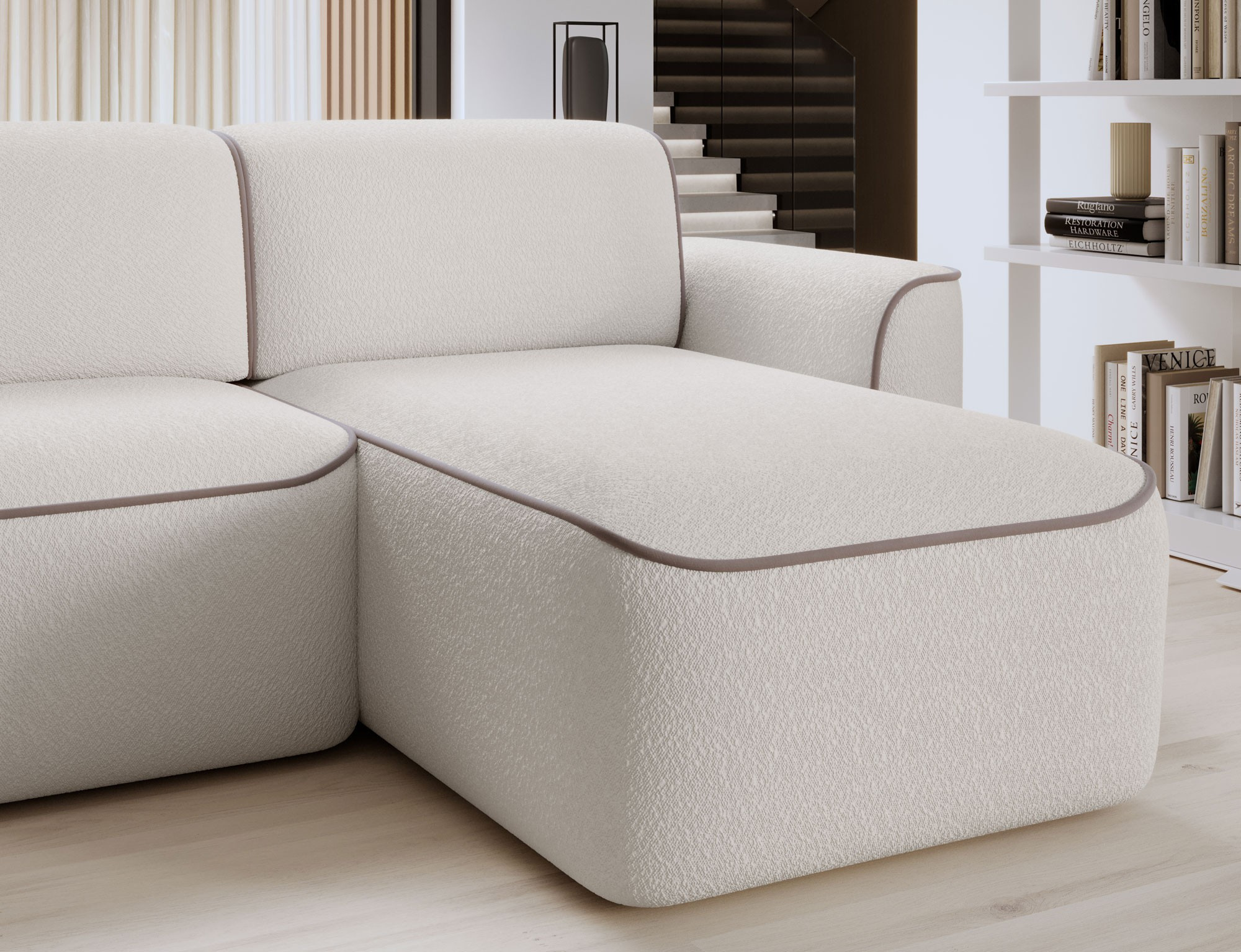 Sedacia súprava UME sa pýši moderným dizajnom, ktorý sa ľahko začlení do akéhokoľvek interiéru. Jej elegantné línie a kvalitné poťahové materiály dodávajú priestoru nádych luxusu. Vďaka ľavostrannému prevedeniu je ideálny na umiestnenie do rohu miestnosti, čím efektívne využijete priestor.