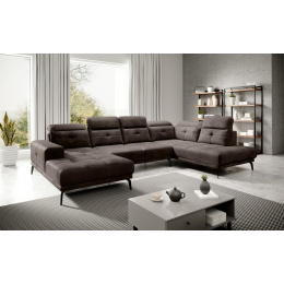Bretan je pohodlná, moderná a dizajnová rohová pohovka. Veľká veľkosť a modernosť sú vlastnosti, ktorými sa Bretan vyznačuje. Pohodlie poskytované rohom je vďaka sedadlám vyplneným vysoko elastickou HR penou so zvýšenou odolnosťou a pevnosťou. Nábytok má opierky hlavy a opierky chrbta, ktoré je možné ľahko nastaviť pre dosiahnutie najpohodlnejšej polohy tela. Charakteristické čierne nohy so zaujímavým tvarom dodávajú nábytku originalitu a pohodlná opierka rúk umožňuje pohodlný odpočinok. Za zmienku tiež stojí, že nohy nábytku sú veľké až 18 cm, čo vám umožňuje ľahko udržiavať čistotu pod rohom. Rozmery produktu sú: 350 x 201 x 107 cm. Navyše je čalúnenie nábytku k dispozícii v mnohých zaujímavých farbách. Rohová pohovka Bretan má zaujímavý tvar a dôvtipné funkcie, pričom jej charakteristickými znakmi sú aj elegantné prešívanie a pevný čalúnnický materiál. Bretan je kus nábytku vyrobený v duchu modernity.