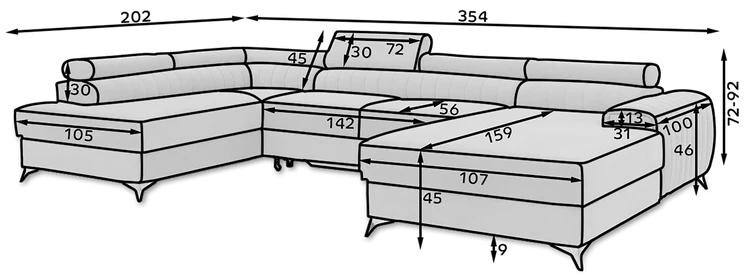 So šírkou 354 cm, výškou 92 cm a hĺbkou 202 cm ponúka sedacia súprava LACANTE dostatok priestoru pre celú rodinu aj priateľov. Jej moderný dizajn v tvare "U" je ideálny pre veľké obývacie izby, kde sa stane dominantným prvkom interiéru. Výška sedu 45 cm zabezpečuje pohodlné sedenie pre každého člena domácnosti.