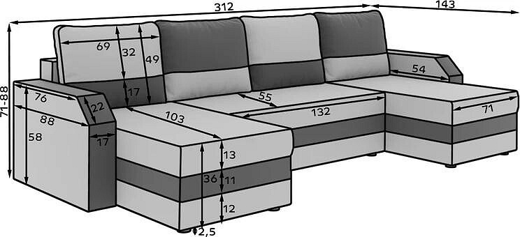 So šírkou 312 cm, maximálnou výškou 88 cm a hĺbkou 143 cm, sedacia súprava MARION ponúka dostatok priestoru pre pohodlné sedenie aj ležanie. Výška sedu je nastavená na príjemných 36 cm, čo zaisťuje pohodlné vstávanie aj usádzanie. Táto ergonomická výška je ideálna pre všetky vekové kategórie a prispieva k celkovému komfortu pri používaní.