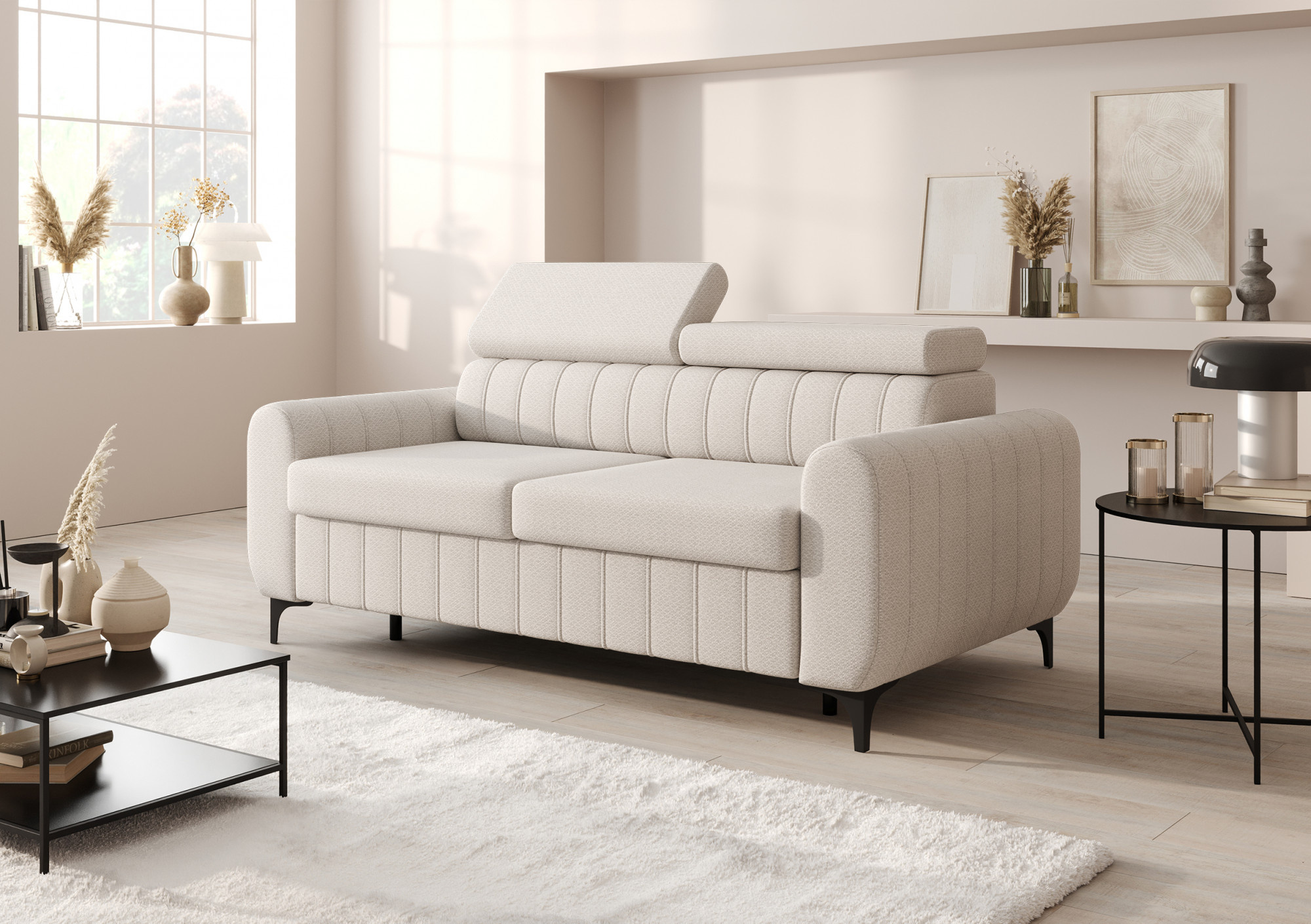 Sofa Zoya s talianskym rámom je kompaktná pohovka s funkciou každodenného spania. Ideálne pre menšie miestnosti, kde je potrebné ako miesto na sedenie, tak aj priestor na spanie. Počas dňa ozdobí vašu obývačku svojím elegantným vzhľadom a v prípade potreby sa stane pohodlnou posteľou.