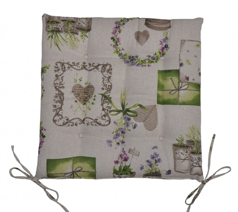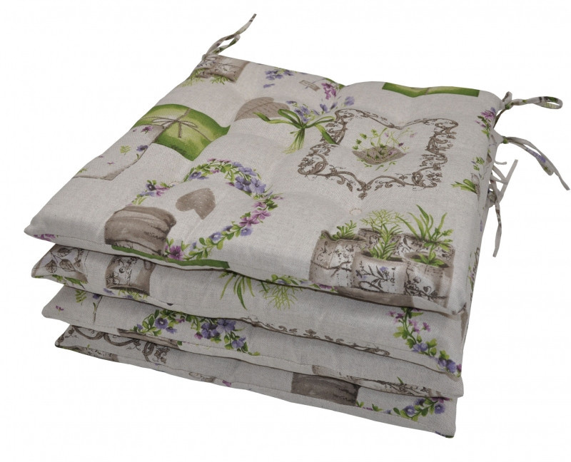 Vankúš na sedenie 9 prešívanie - tkanina s motívom fialiek - sada 4 kusov