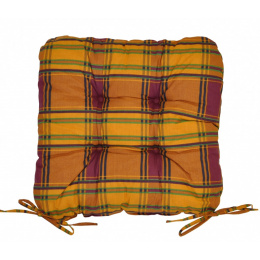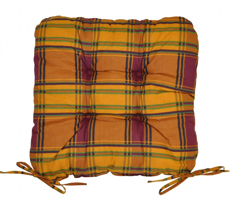 Univerzálny vankúš na sedenie vyplnený drvenou penou. | Praktické sedadlo stoličky vyplnené drvenou penou. Vďaka tomu si sedadlo zachová svoj tvar a výšku počas celého obdobia používania. Sedadlo má štvorcový tvar so zaoblenými rohmi. Rozmery vankúša na sedenie sú 39x39 cm. Výška sedadla je približne 7 cm. Sedák je vybavený praktickými šnúrami na pripevnenie k stoličke. Sedák môžete použiť na bežné stoličky, plastový nábytok alebo záhradný nábytok. Šnúry na pripevnenie k stoličke sú vyrobené priamo z látky sedacieho vankúša, čím sa zabezpečí, že šnúry budú ladiť s celým sedacím vankúšom a výsledný efekt bude dokonalý. Dĺžka šnúr je 30 cm a v každom rohu sú všité dve šnúry na jednoduché pripevnenie sedadla k stoličke. Šnúry sú dostatočne dlhé na to, aby ste ich mohli zaviazať okolo celého operadla (za stoličkou). Ďalšou výhodou je, že naše vankúše na sedenie je možné prať pri 40 stupňoch Celzia.
