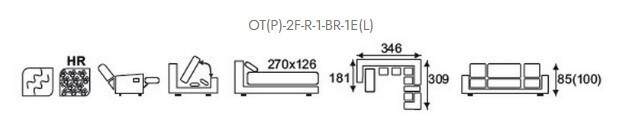 181 x 346 x 309, v. 85-100 cm (plocha na spanie: 270 x 126 cm)