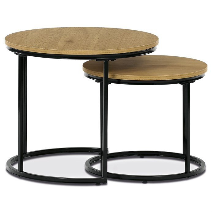 Sada dvoch odkladacích stolíkov značky Autronic spája moderný dizajn a funkčnosť. Okrúhle dosky v prírodnom dekore skvele kontrastujú s čiernymi kovovými nohami, čo vytvára elegantný industriálny vzhľad. Stoly je možné ľahko zasunúť pod seba, čo šetrí priestor a zvyšuje ich praktické využitie. Sú ideálne do obývacej izby na odloženie nápojov, kníh alebo dekorácií. Vďaka starostlivému spracovaniu a kvalitným materiálom je táto sada štýlovým a odolným doplnkom každého interiéru.