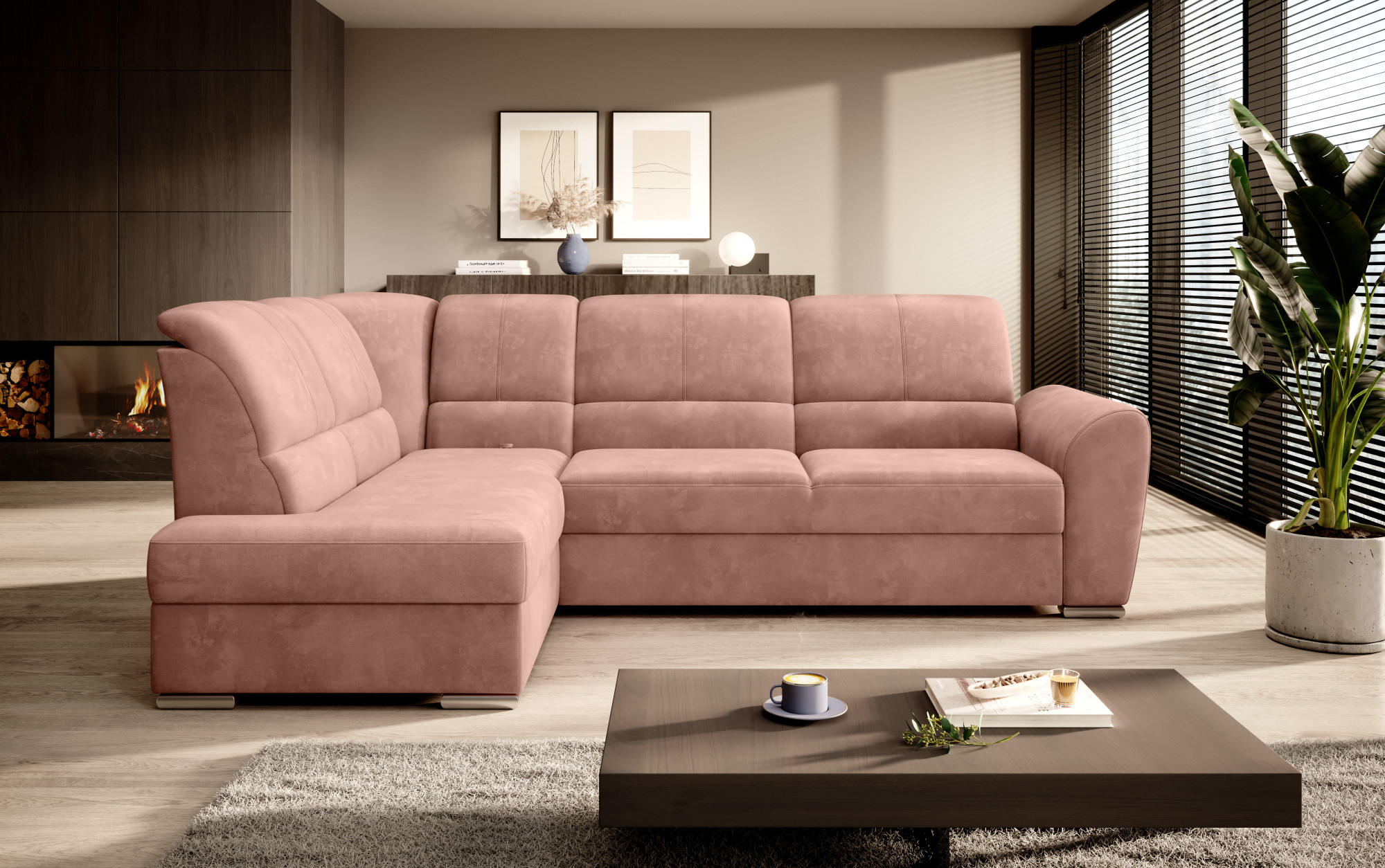 Rohová sedacia súprava Siber je ideálnym riešením pre tých, ktorí si cenia poriadok a organizáciu. Pomáha šetriť miesto vďaka veľkému úložnému priestoru na posteľnú bielizeň. Jeho vysoko profilované nastaviteľné opierky chrbta, zdobené štýlovým prešívaním, zabezpečia, že aj hodiny relaxácie pri vašom obľúbenom televíznom seriáli budú pohodlným a komfortným zážitkom. Rozmery rohovej sedacej súpravy: 270 x 186 x 93 cm, čo umožňuje pokojný odpočinok pre väčší počet ľudí bez nutnosti pridávať ďalší sedací nábytok. Okrem toho sa rohová sedačka môže stať ďalším lôžkom vďaka skladacej funkcii spania s plochou 205 x 125 cm. Mechanizmus skladania typu delfín použitý v tomto kuse nábytku je skvelý a jednoduchý spôsob, ako premeniť rohovú pohovku na plnohodnotnú posteľ. Za zmienku stoja aj nastaviteľné opierky chrbta, ktoré vám môžu pomôcť pohodlne relaxovať pri čítaní knihy alebo sledovaní televízie. Zaujímavými prvkami tohto kusu nábytku sú jeho 5 cm vysoké drevené nohy a tiež sedák vyplnený penou T30, ktorá poskytuje vynikajúcu pružnosť a vysokú hustotu.