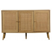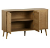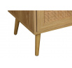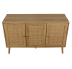 Komoda s 3 čelami zo série Ballo je moderný nábytok v prírodnom boho štýle. Minimalistická konštrukcia ozdobená prírodnými materiálmi ako ratan alebo masívne drevo sa osvedčí v interiéri zladenom s prírodnými farbami. Jasná skrinka v teplom odtieni dreva sa ideálne hodí do béžového interiéru. Materiál korpusu: drevotriesková doska laminovaná papierovým laminátom imitujúcim prírodnú farbu duba. Nohy komody vyrobené z masívneho borovicového dreva. Ratanová dekorácia čel. Vyžaduje montáž. Maximálne zaťaženie nábytku 50 kg. Rozmery kartónu: 45x14x122 cm