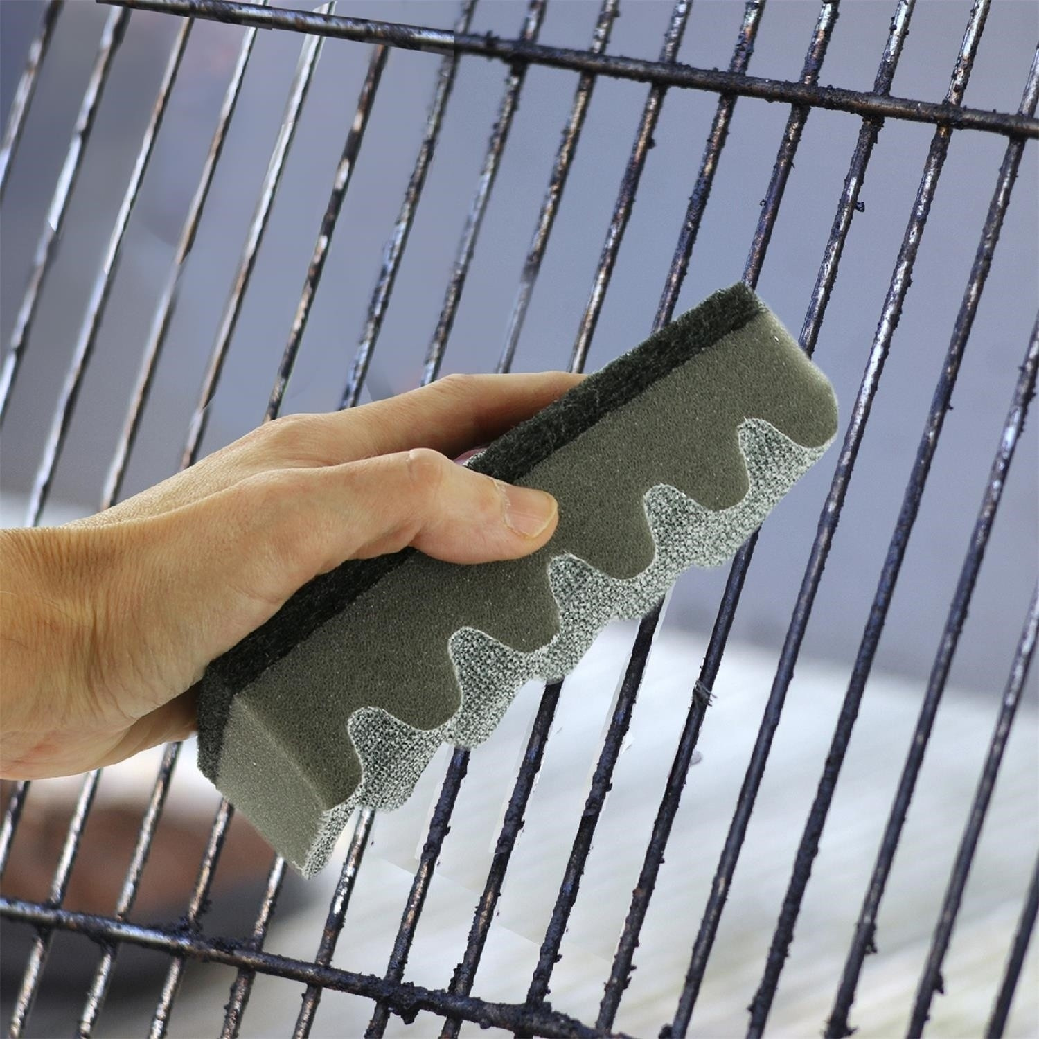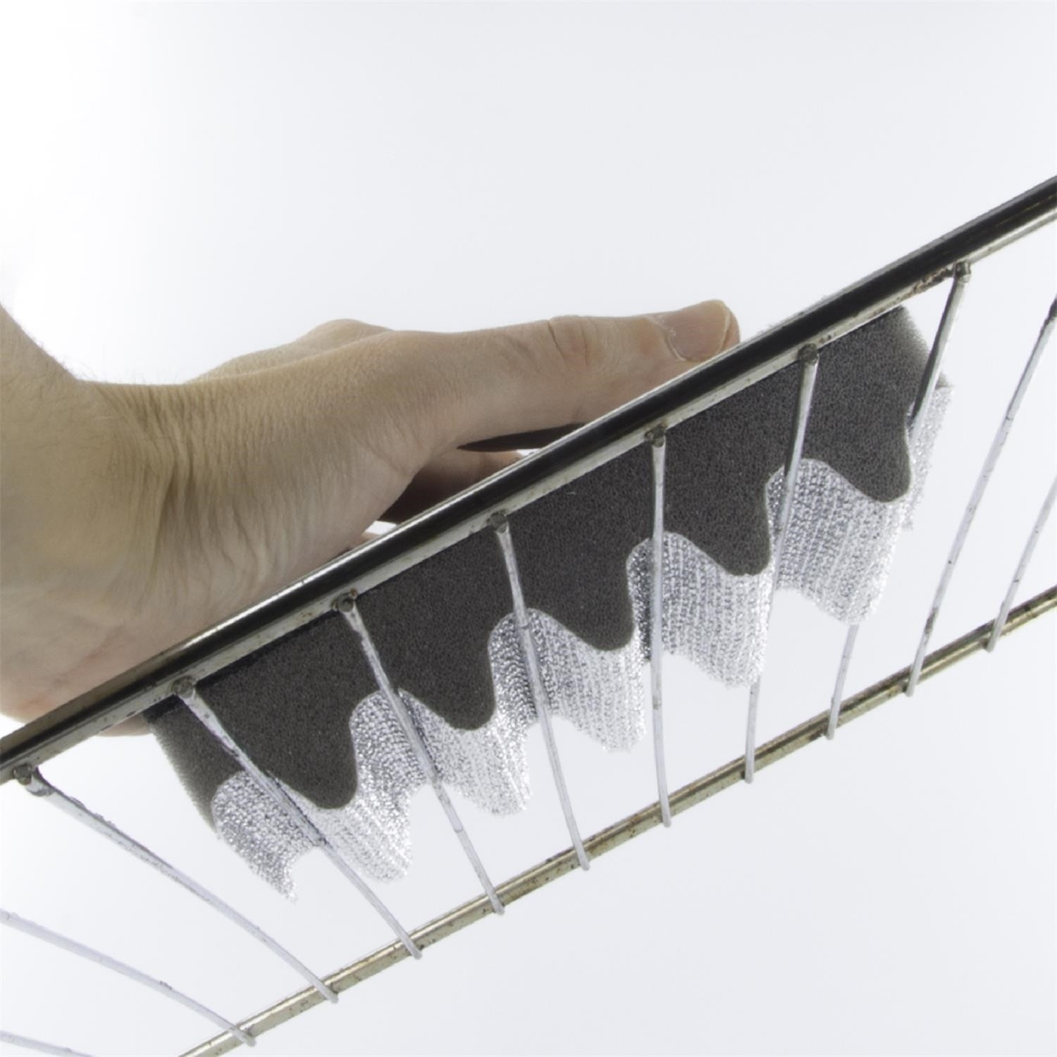 Hubka na čistenie roštu sa osvedčí nielen pri grilovaní, ale aj pri čistení domácej rúry. Hubka z jednej strany je vybavená zvlnenou, kovovou štruktúrou, ktorá dokonale čistí každú priečku roštu. Druhou, mäkšou stranou hubky môžeme utrieť jemnejšie časti rúry a grilu.