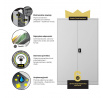 - Bezpečnostný Zámok: Dvojkrídlové dvere sú vybavené pevným zámkom s tromi uzamykacími bodmi, ktorý chráni obsah skrine pred neoprávneným prístupom. Súčasťou balenia sú 2 kľúče.