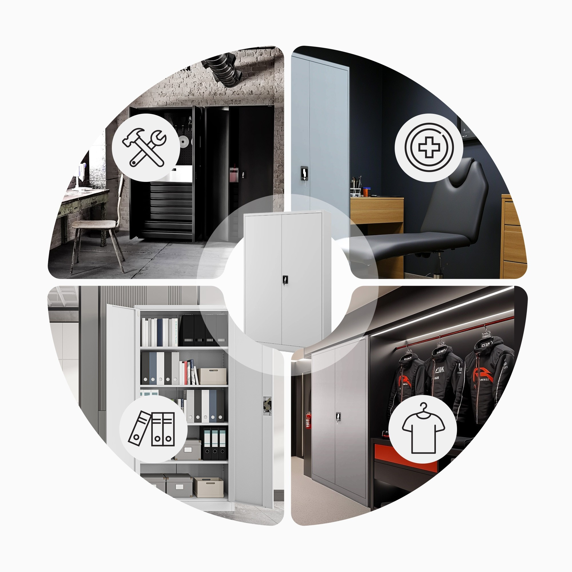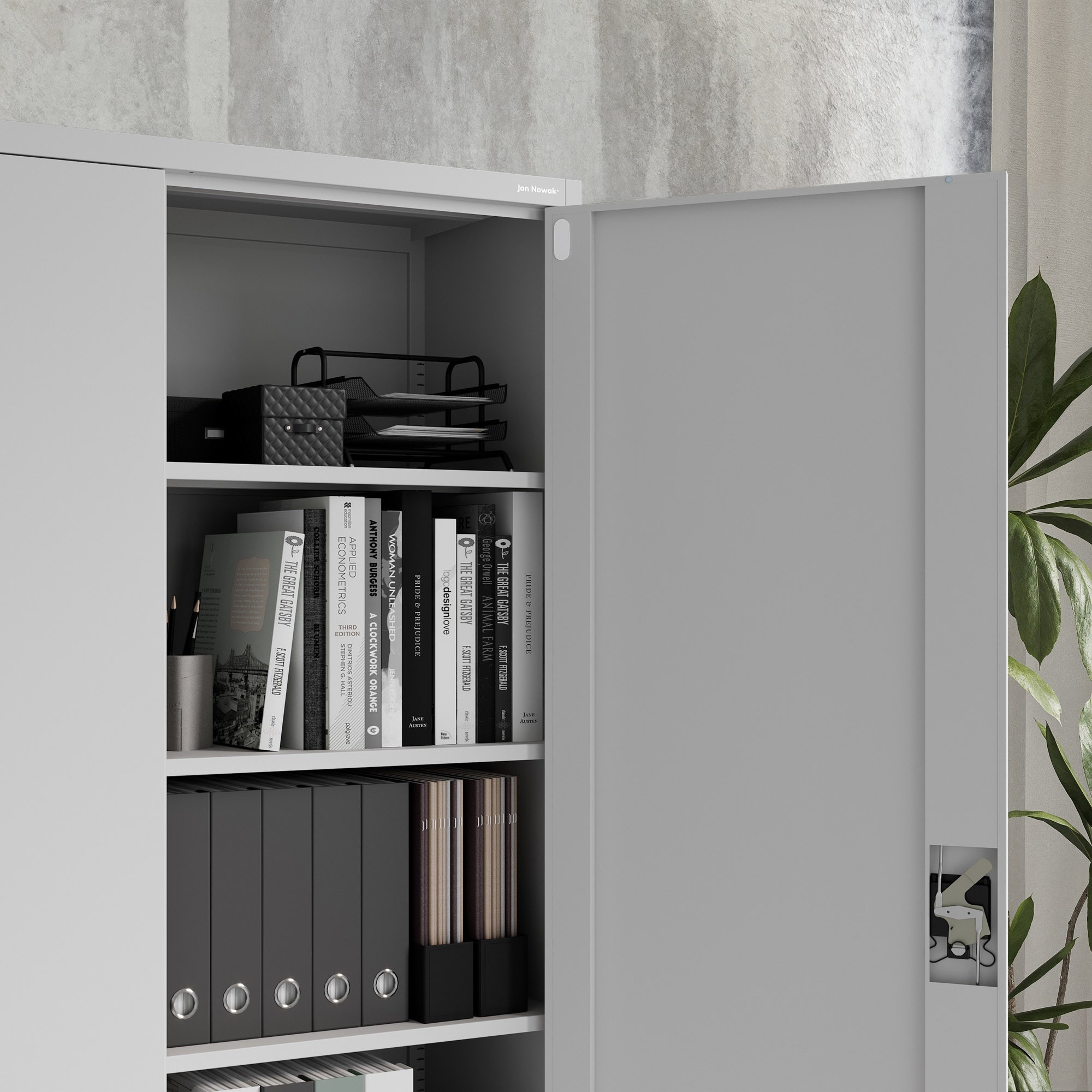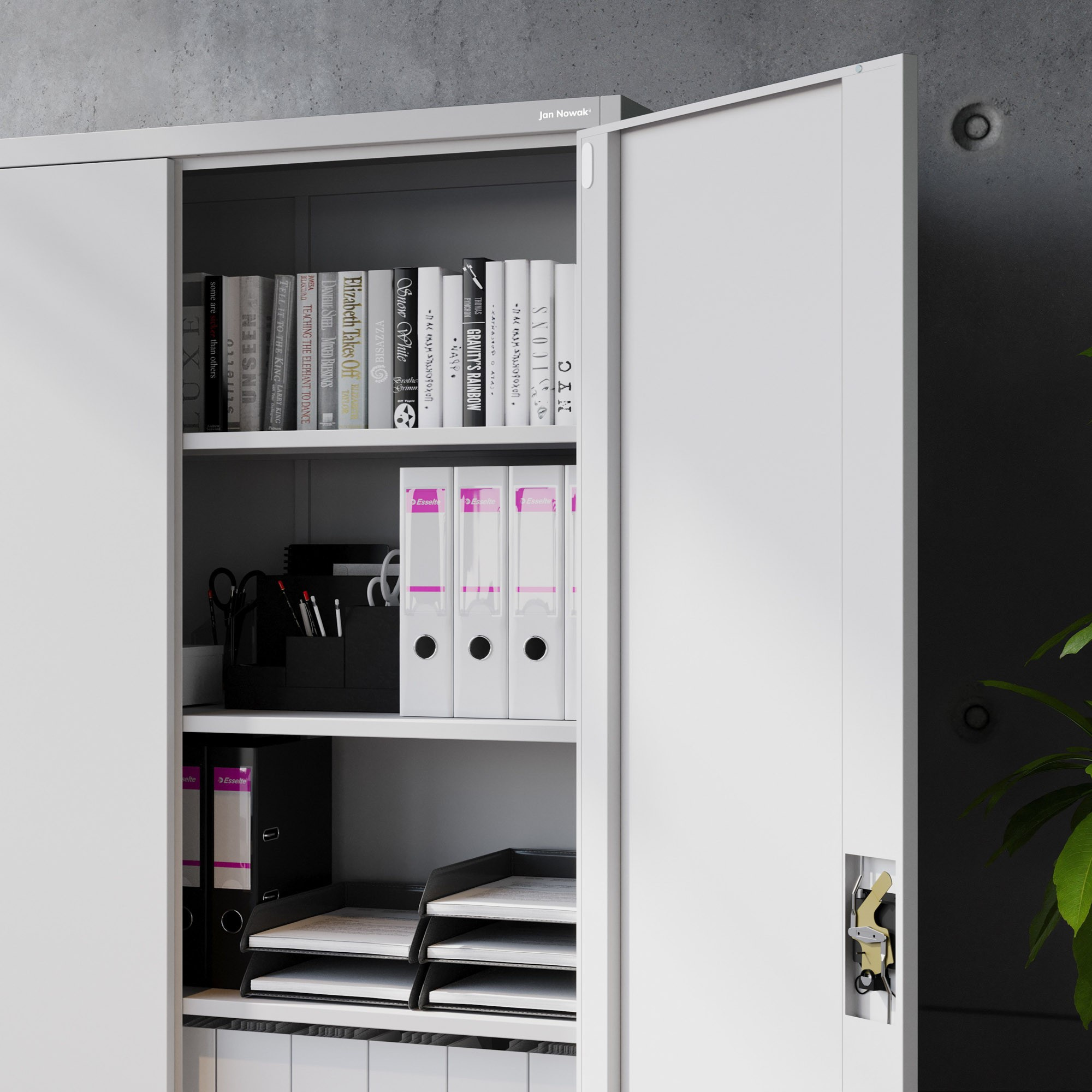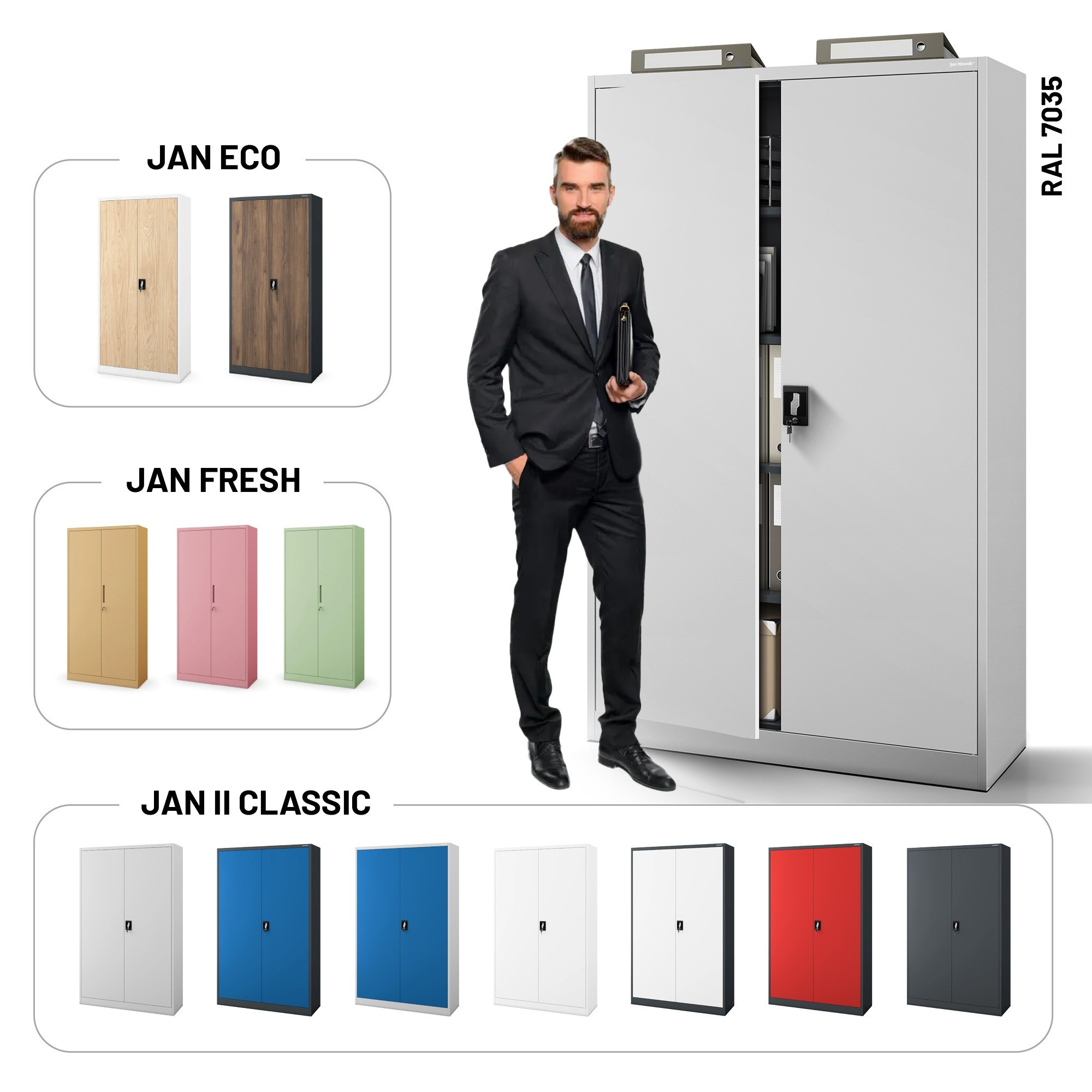 Vďaka svojmu minimalistickému dizajnu a neutrálnej šedej farbe (RAL 7035) sa skriňa JAN II ľahko začlení do akéhokoľvek interiéru. Skvele sa hodí do moderných kancelárií, industriálnych loftov, škandinávsky zariadených priestorov aj minimalistických domácností. Jej univerzálny vzhľad zaručuje, že sa stane funkčným a estetickým doplnkom vášho priestoru.