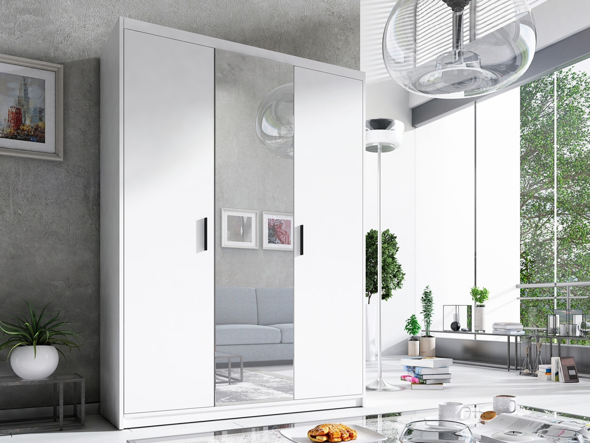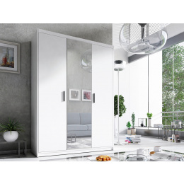 Skriňa Elena 3D so zrkadlom - biela matná, šírka: 133, výška: 190,5, hĺbka: 53, montáž: vlastná. Trojdverová šatníková skriňa vybavená praktickými policami a šatníkovou tyčou.