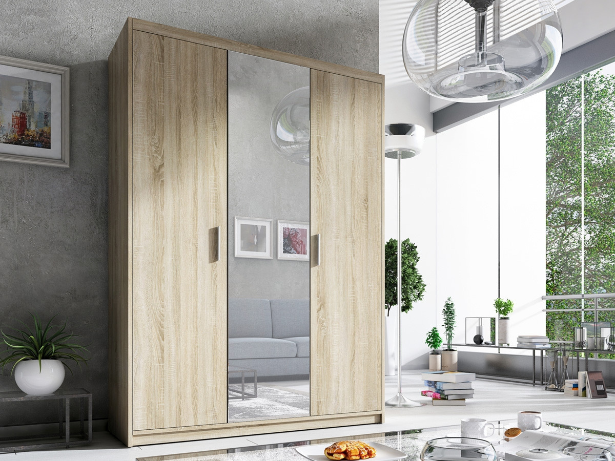Skriňa Elena 3D so zrkadlom - Dub sonoma, šírka: 133, výška: 190,5, hĺbka: 53, montáž: vlastná. Univerzálna šatníková skriňa do predsiene s priestranným interiérom. Zoznámte sa s nábytkom z duba sonoma.