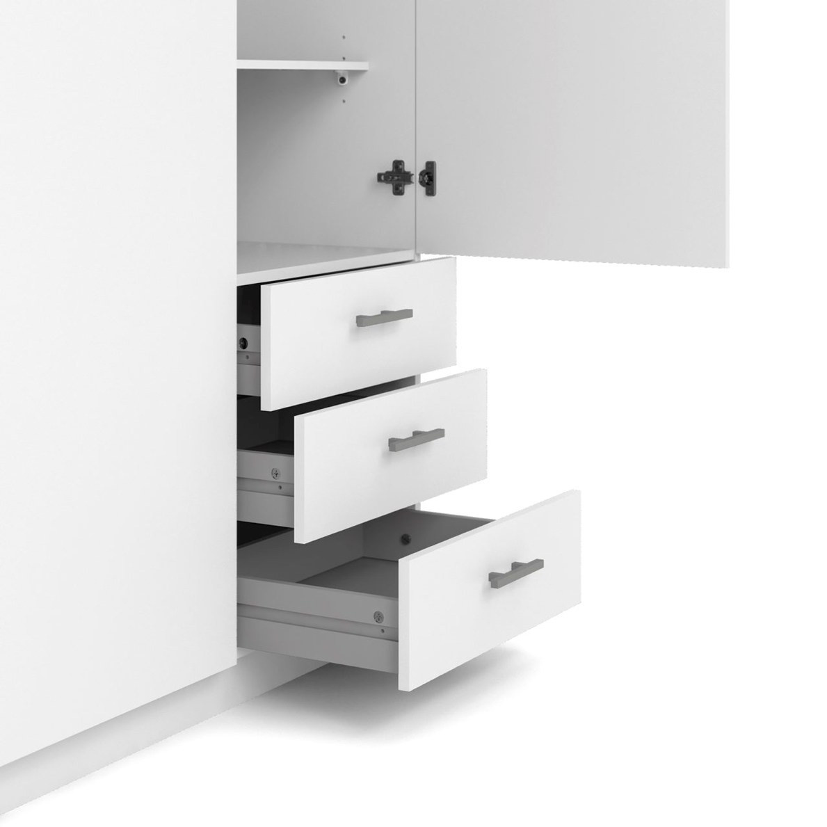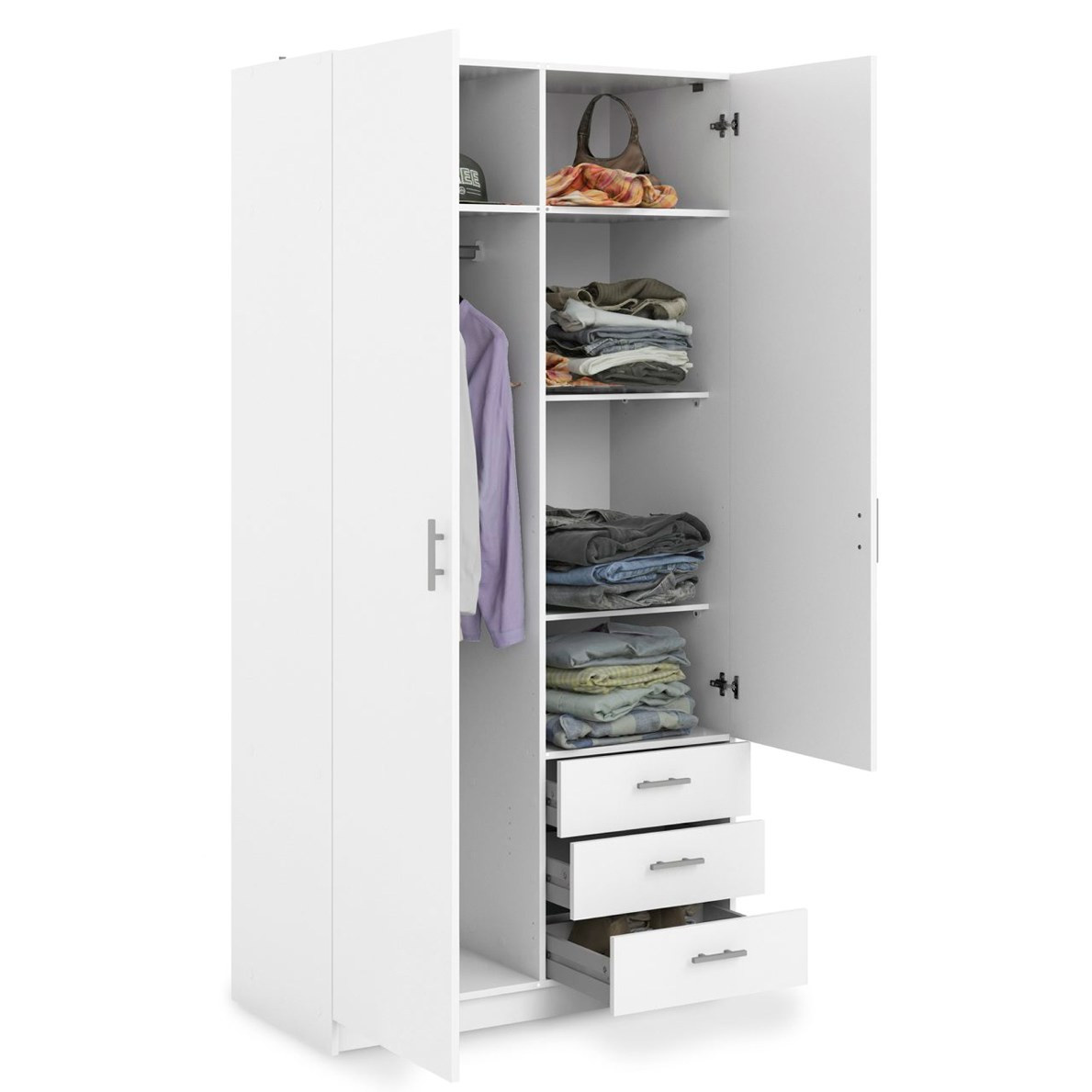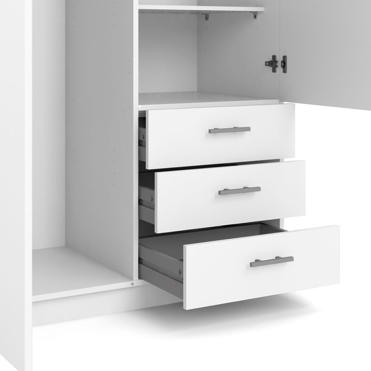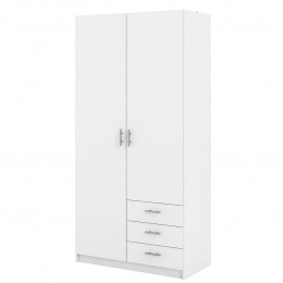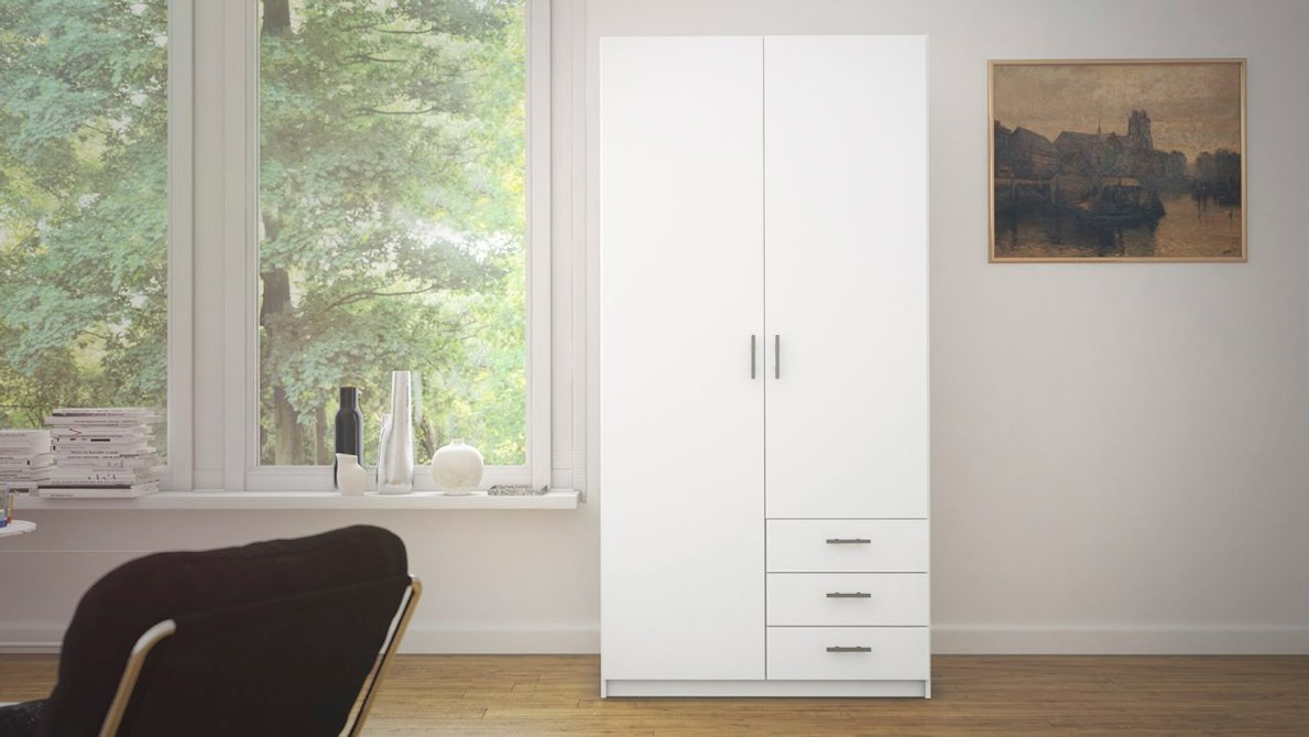 Šatníková skriňa Pegi spĺňa všetky požiadavky na skladovanie oblečenia. Vnútorné usporiadanie skrine poskytuje dostatok priestoru na oblečenie, ktoré je potrebné zavesiť, na oblečenie, ktoré zložíte do políc a vďaka trom praktickým zásuvkám v skrini môžete uložiť aj malé oblečenie a budete mať všetko oblečenie uložené na jednom mieste. Skrinka je vyrobená z laminátu, ktorý je odolný a ľahko sa udržiava. Skriňa sa dodáva v demontovanom stave a obsahuje montážny plán vrátane všetkých potrebných spojovacích prvkov. Pri tomto type skrinky nemusia byť niektoré neviditeľné hrany dosiek alebo povrchov natreté vo farbe skrinky (najmä horná podlaha alebo hrany dverí atď.). Zobrazené príslušenstvo a dekorácie nie sú súčasťou balenia.