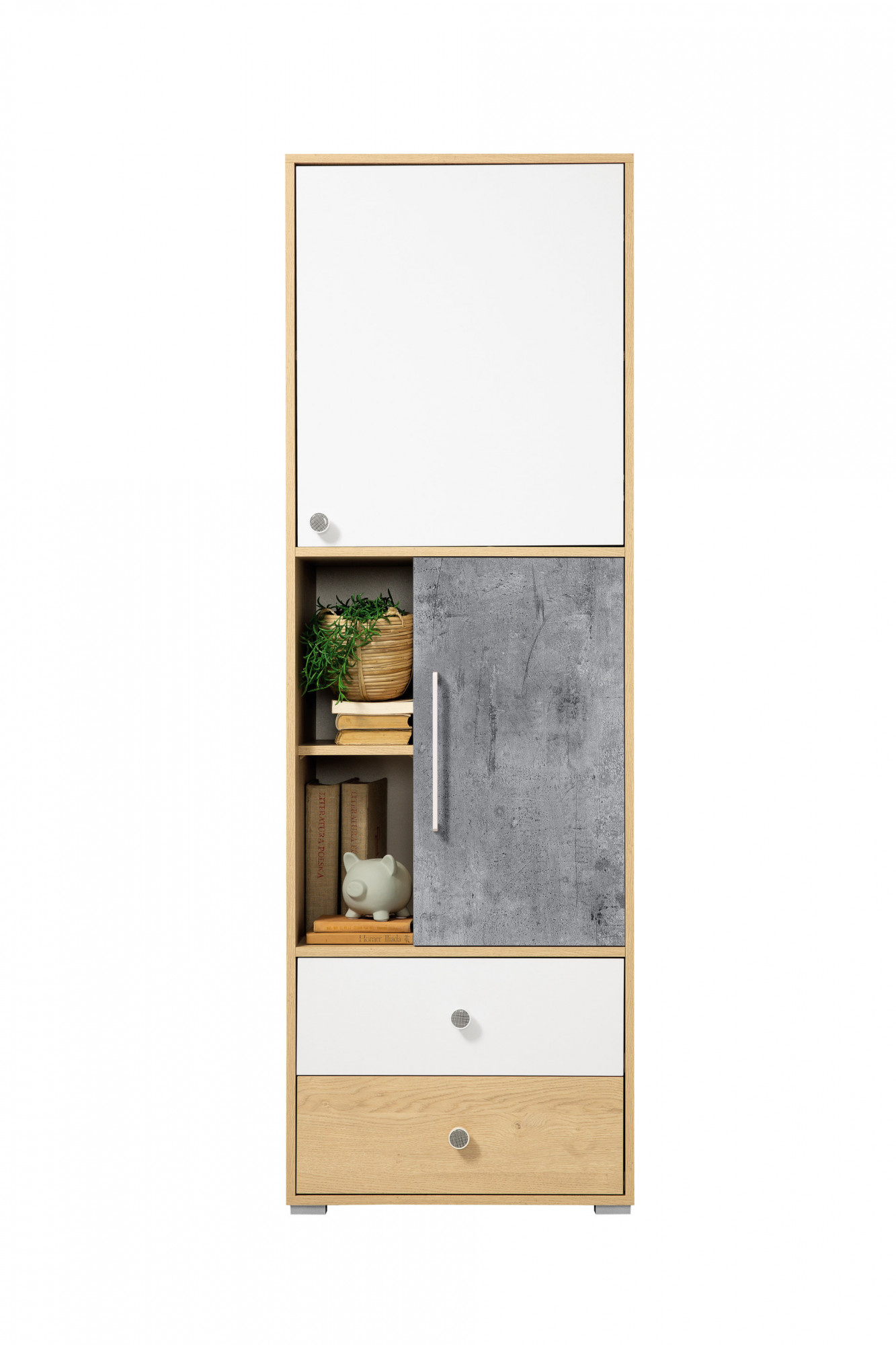 Regál STEP - ST3, dub biskvitový/biely lux/betón