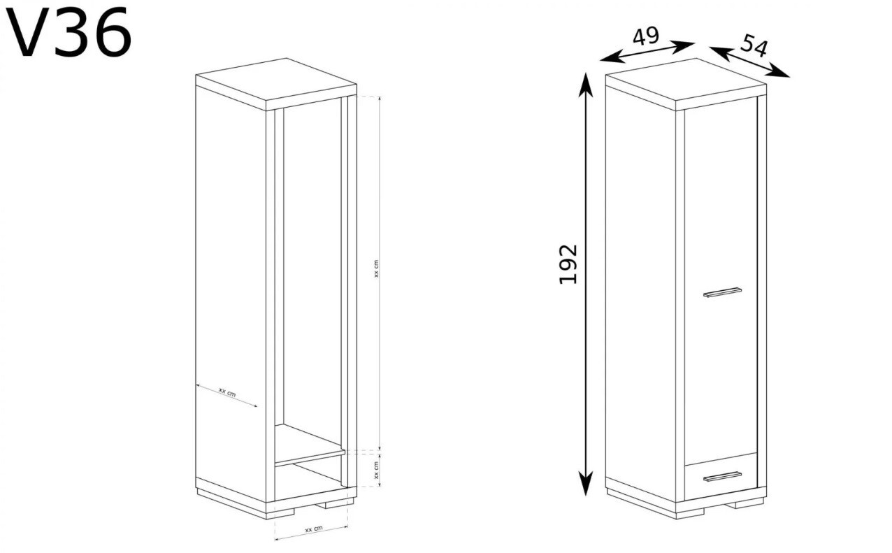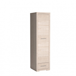 Jednodverová šatníková skriňa z kolekcie Vegas. V strede má lištu, ktorá umožňuje vyplniť voľný priestor skrinky. Pod ním sa nachádza malá zásuvka na menšie príslušenstvo. Šatníková skriňa sa hodí do mnohých konfigurácií, zapadne do každého rohu a vnesie do miestnosti príjemnú atmosféru. Kovové úchyty podčiarkujú pevnosť nábytku.