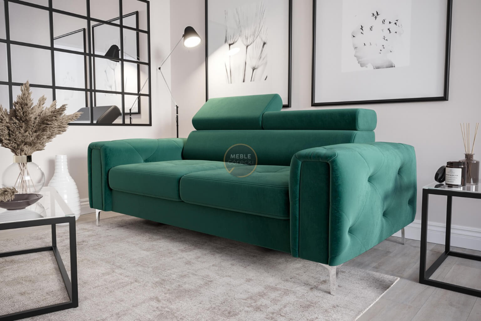 Kolekcia čalúneného nábytku Orion je niečo, čo nikde inde nenájdete! Charakteristickým prvkom sú krásne zdobené, prešívané boky v štýle glamour. Okrem estetických prvkov stojí za to venovať pozornosť dokončeniu v podobe nastaviteľných opierok hlavy, ktoré uľahčia prispôsobenie výšky operadla tak, aby bola pre vás ideálna. Vysoké 13 cm kovové nohy podčiarkujú celok a dodávajú konštrukcii ľahkosť.