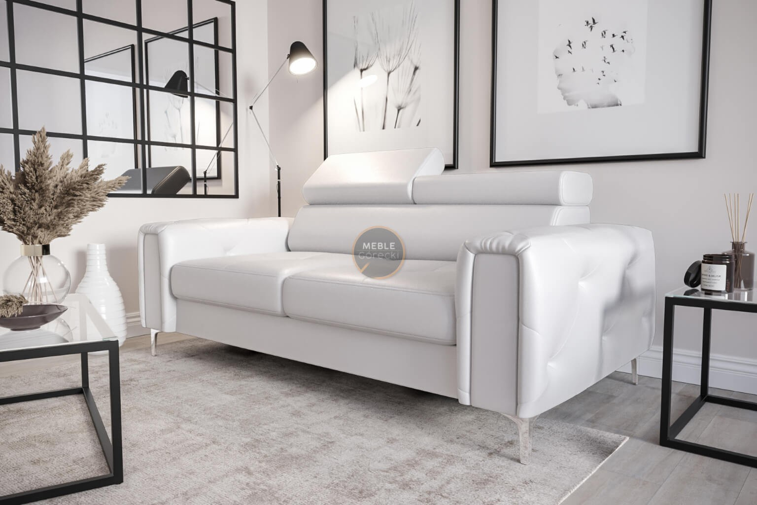 Kolekcia čalúneného nábytku Orion je niečo, čo nikde inde nenájdete! Charakteristickým prvkom sú krásne zdobené, prešívané boky v štýle glamour. Okrem estetických prvkov stojí za to venovať pozornosť dokončeniu v podobe nastaviteľných opierok hlavy, ktoré uľahčia prispôsobenie výšky operadla tak, aby bola pre vás ideálna. Vysoké 13 cm kovové nohy podčiarkujú celok a dodávajú konštrukcii ľahkosť.
