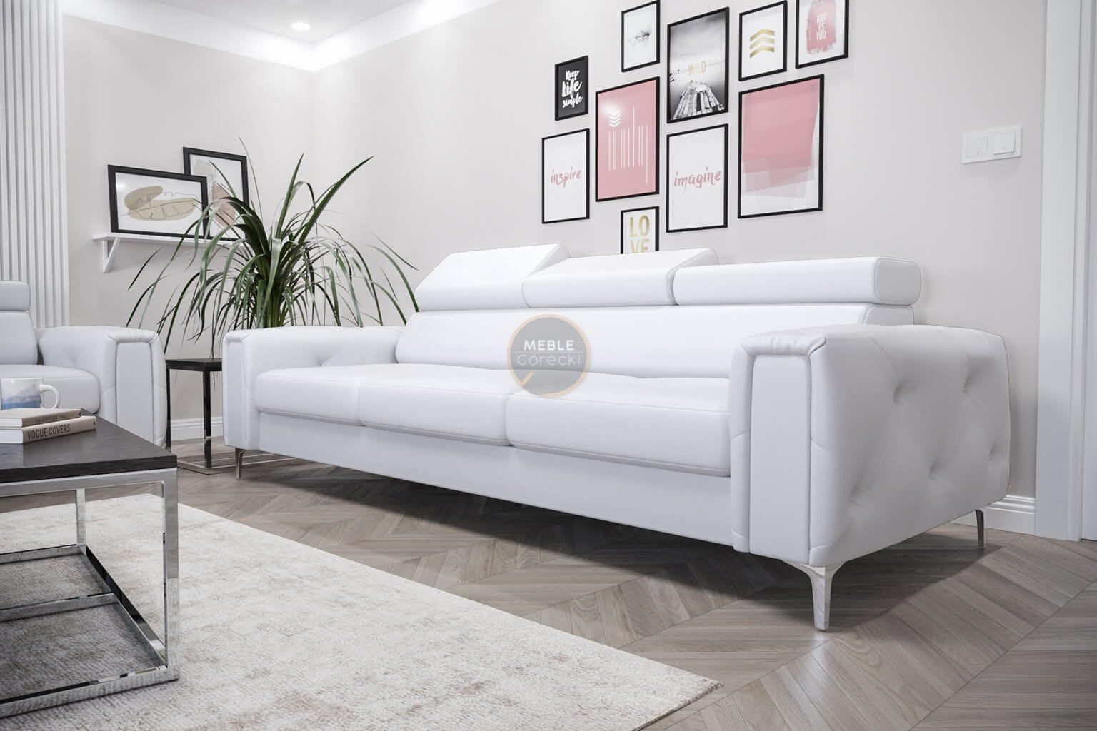 Kolekcia čalúneného nábytku Orion je niečo, čo nikde inde nenájdete! Charakteristickým prvkom sú krásne zdobené, prešívané boky v štýle glamour. Okrem estetických prvkov stojí za to venovať pozornosť dokončeniu v podobe nastaviteľných opierok hlavy, ktoré uľahčia prispôsobenie výšky operadla tak, aby bola pre vás ideálna. Vysoké 13 cm kovové nohy podčiarkujú celok a dodávajú konštrukcii ľahkosť.