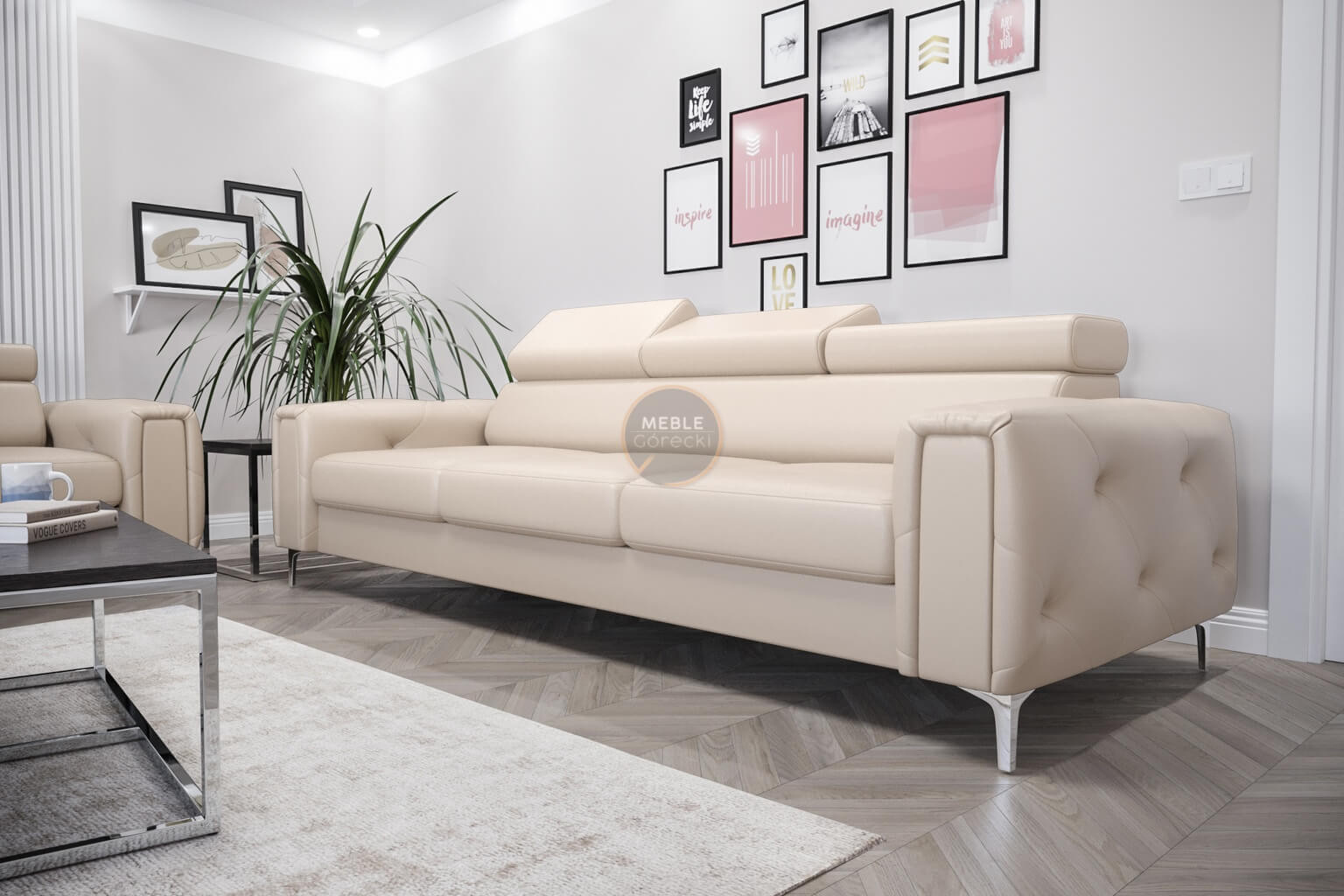 Kolekcia čalúneného nábytku Orion je niečo, čo nikde inde nenájdete! Charakteristickým prvkom sú krásne zdobené, prešívané boky v štýle glamour. Okrem estetických prvkov stojí za to venovať pozornosť dokončeniu v podobe nastaviteľných opierok hlavy, ktoré uľahčia prispôsobenie výšky operadla tak, aby bola pre vás ideálna. Vysoké 13 cm kovové nohy podčiarkujú celok a dodávajú konštrukcii ľahkosť.