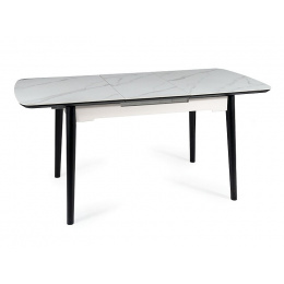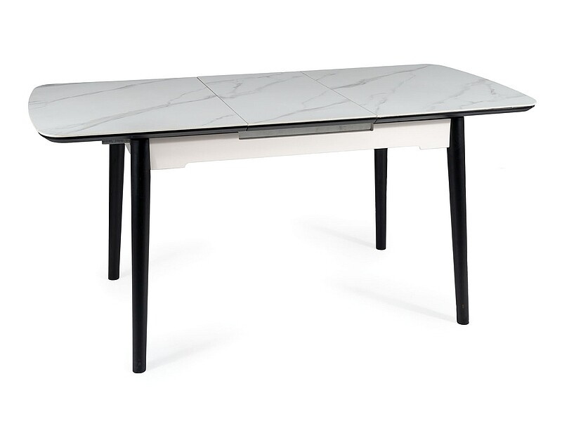 Jedálenský stôl APOLLO 150(190) cm, efekt bieleho mramoru/čierny mat