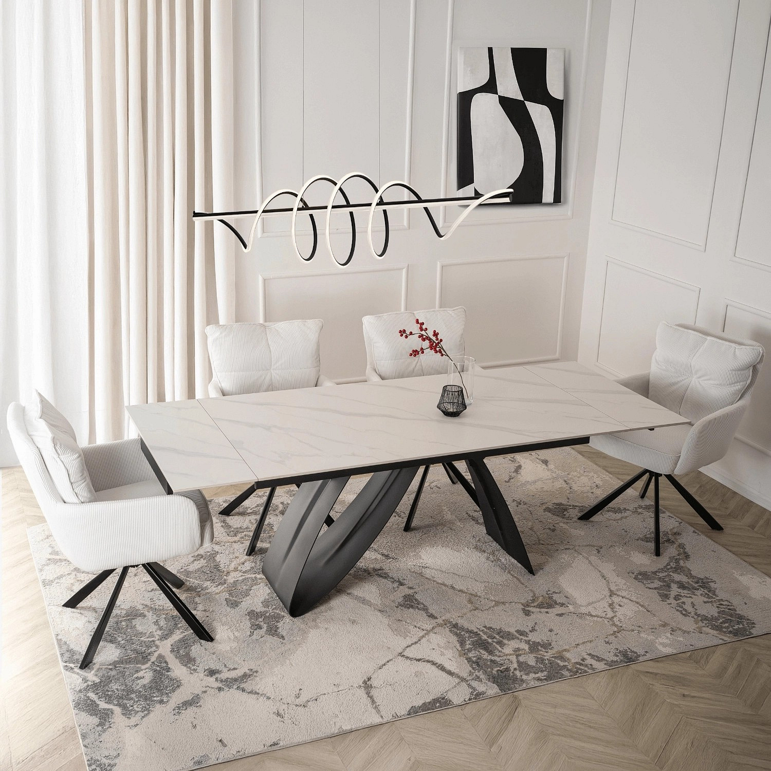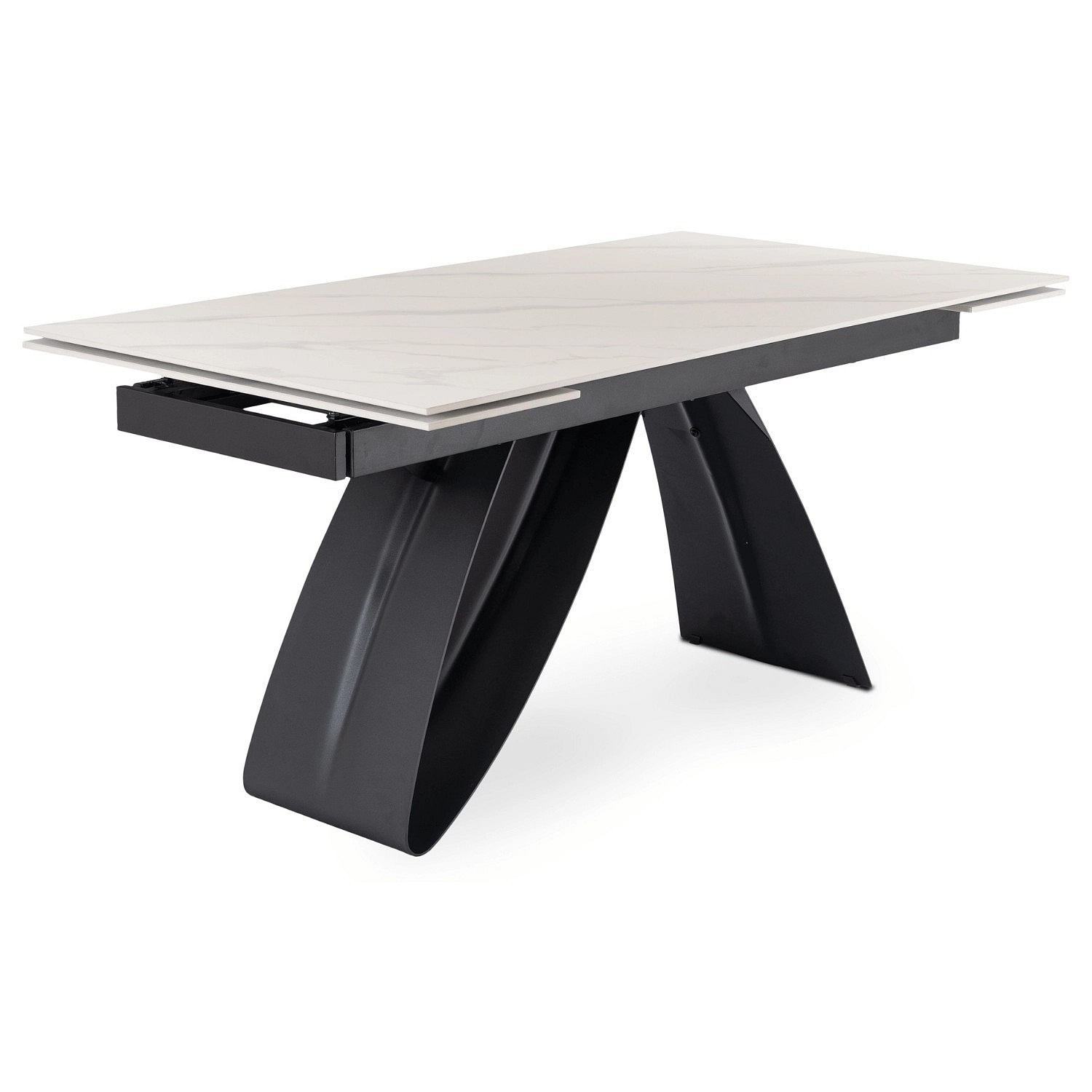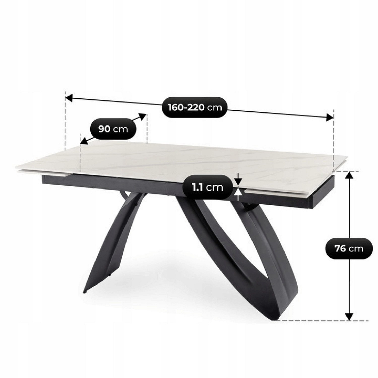 Stôl DEVON Keramický Rozkladací 160-220 cm Biely Mramor/Čierny