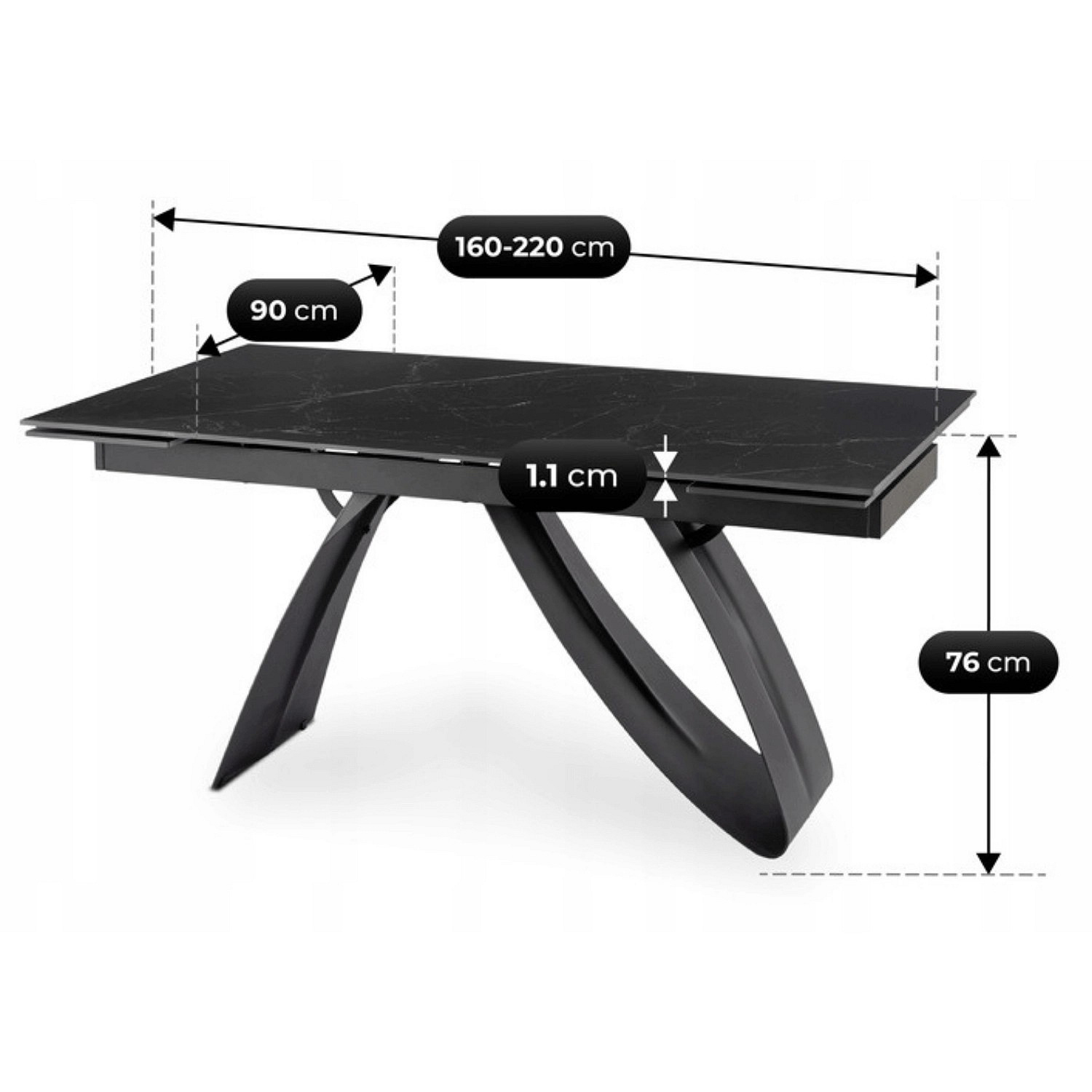 Stôl DEVON Keramický Rozkladací 160-220 cm Čierny Mramor/Čierny