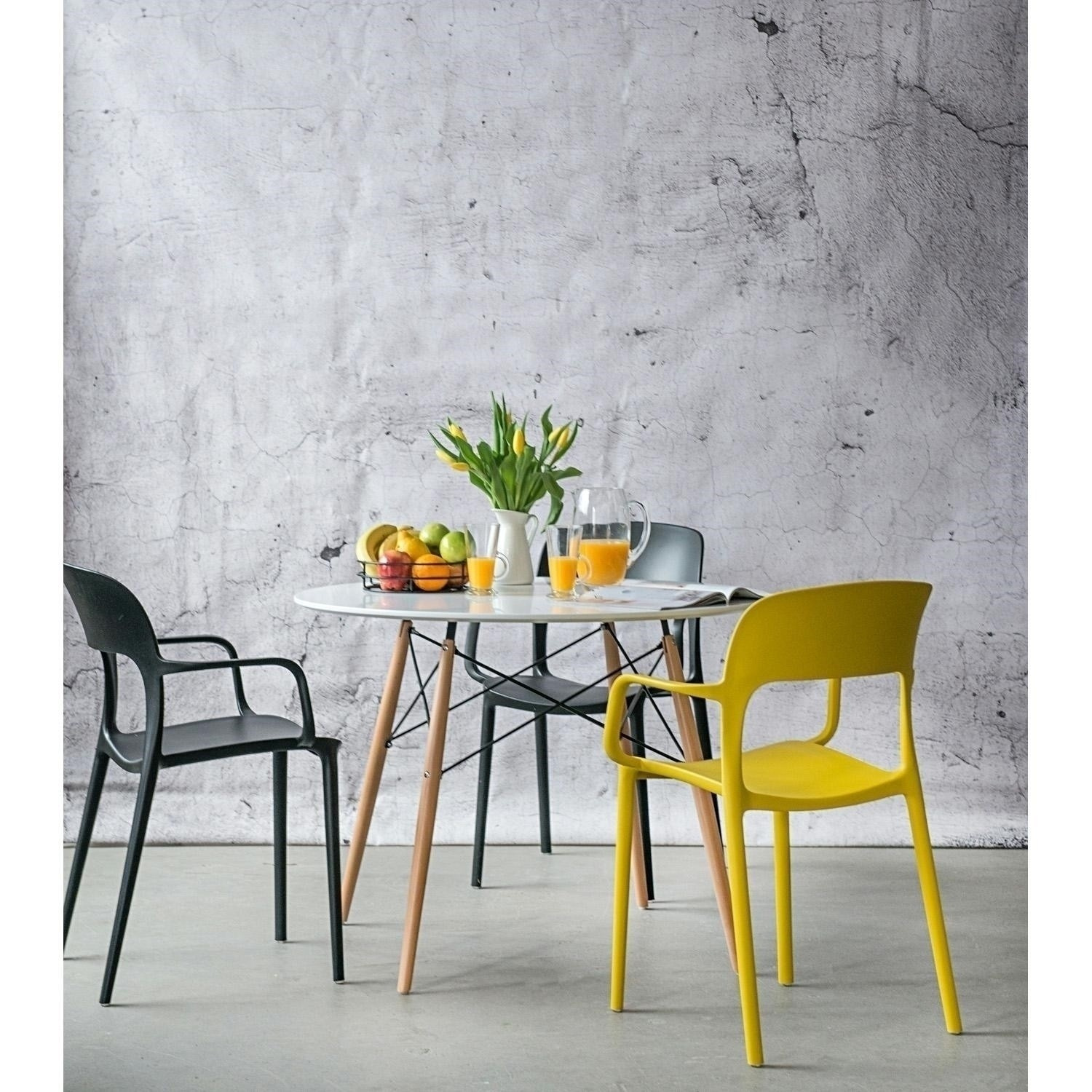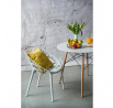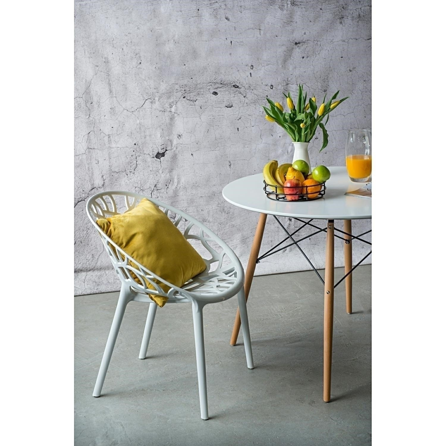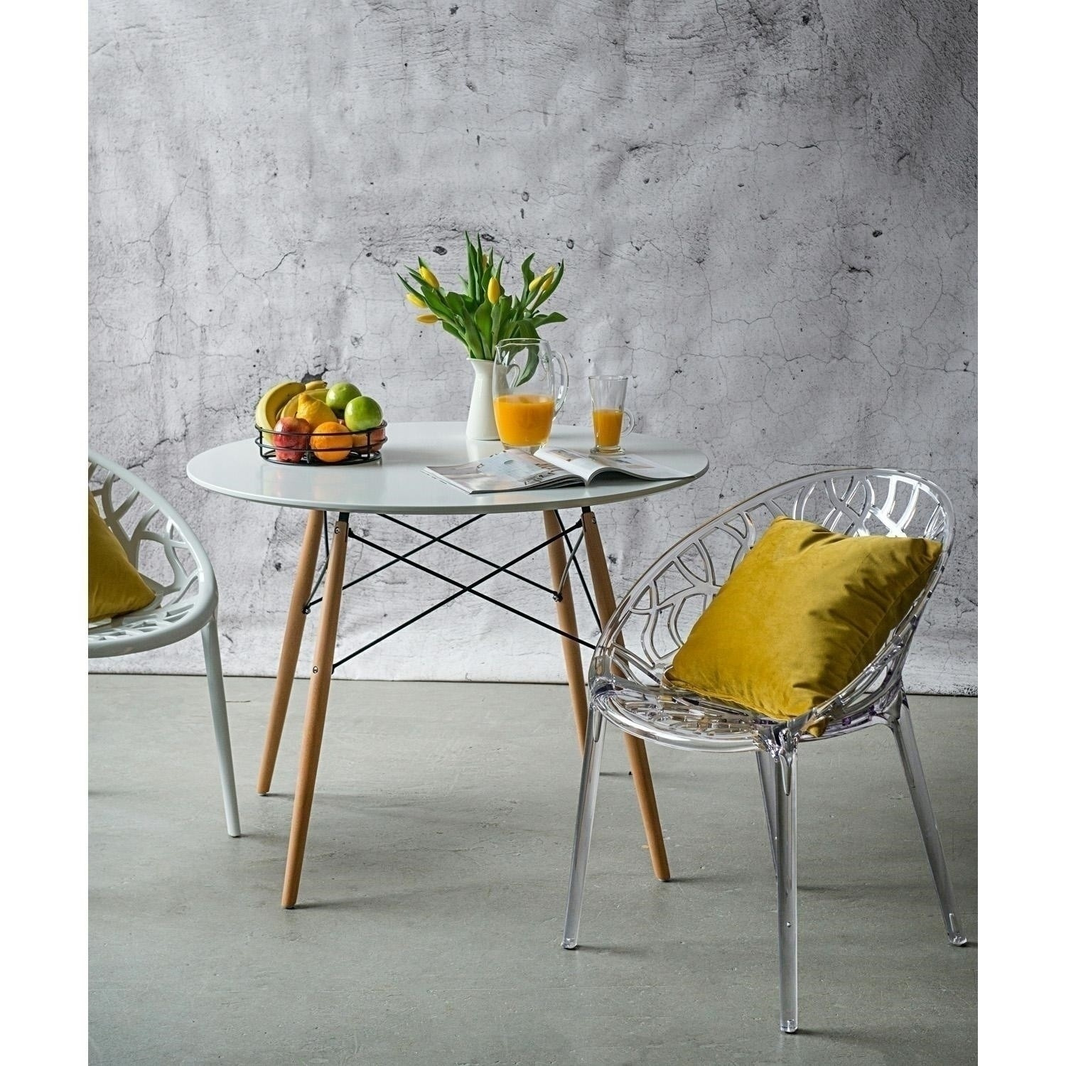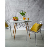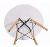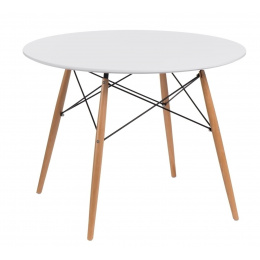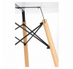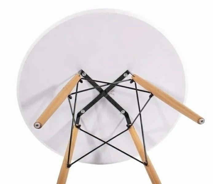 Neobyčajný stolík klasického tvaru. Doska stola je vyrobená z lakovanej MDF dosky. Základňa je vyrobená z bukového dreva a kovových spojov lakovaných na čierno, ktoré kontrastujú s bielou doskou stolíka.