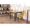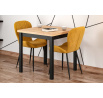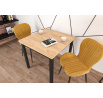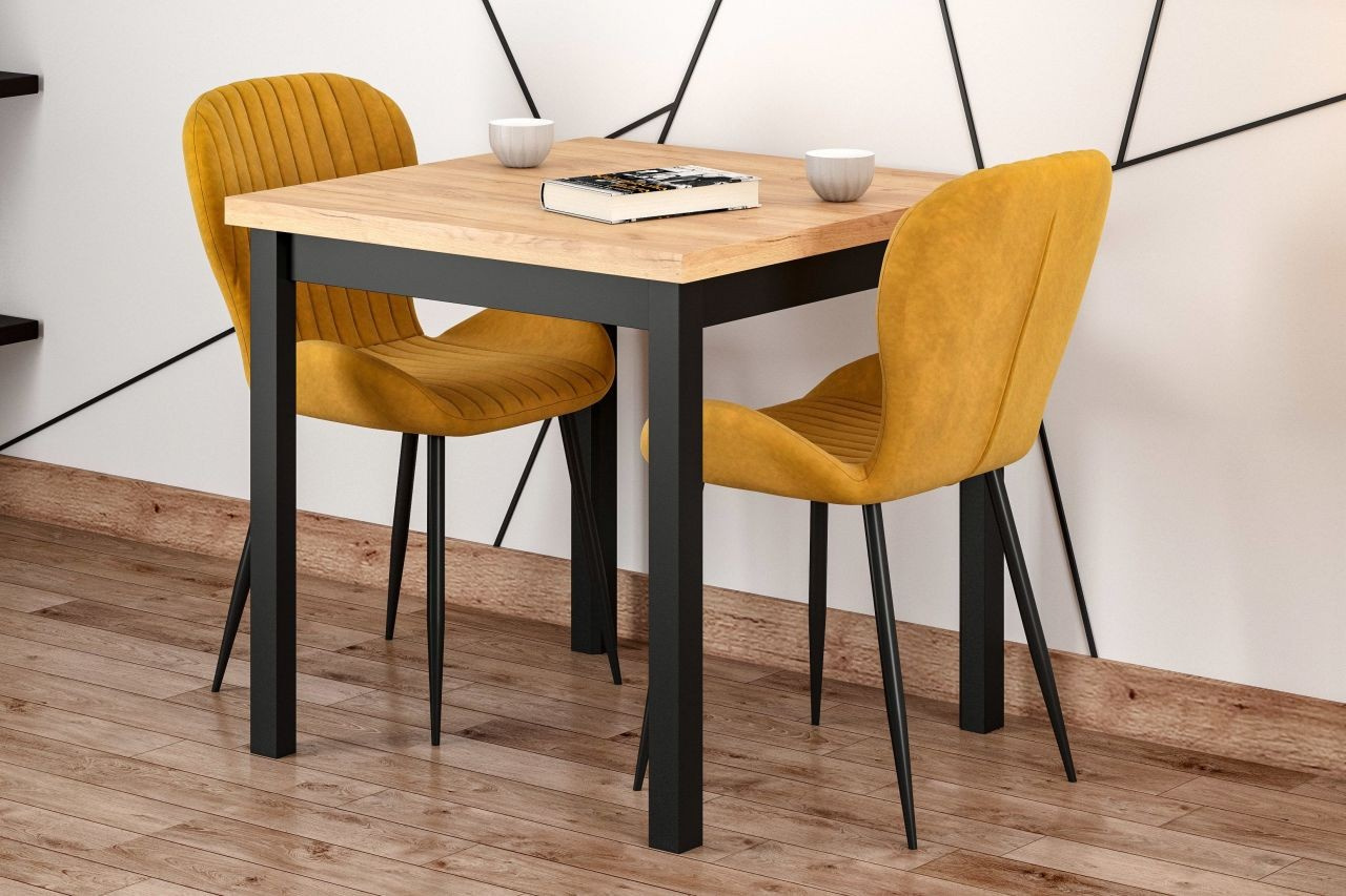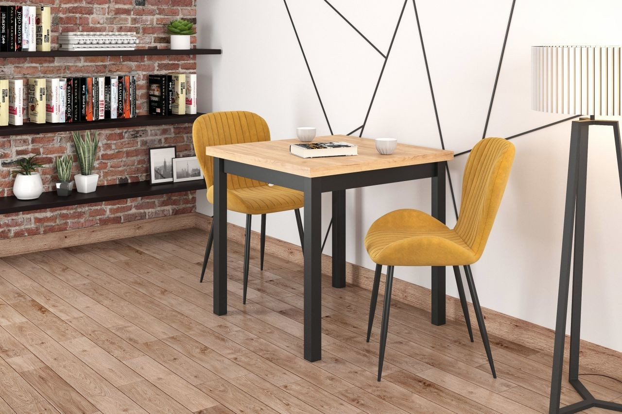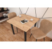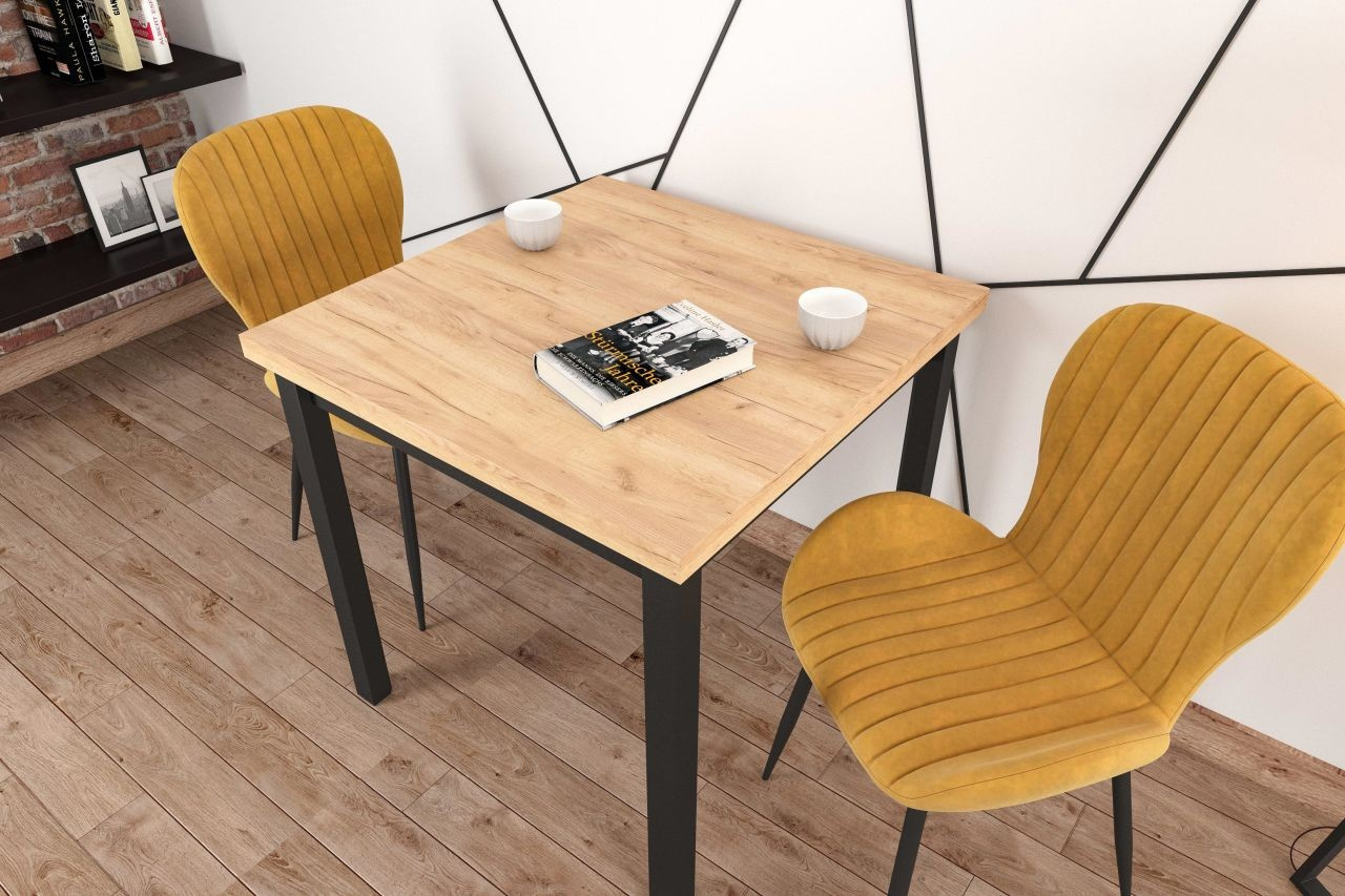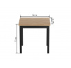 Rozmery: - dĺžka: 80 cm - šírka: 80 cm - výška: 77 cm - hrúbka dosky: 3,8 cm Materiál: - doska: laminovaná drevotrieska - nohy: MDF - hrany dosky: zakončené ABS plastom Farba: - zlatý dub craft + čierna