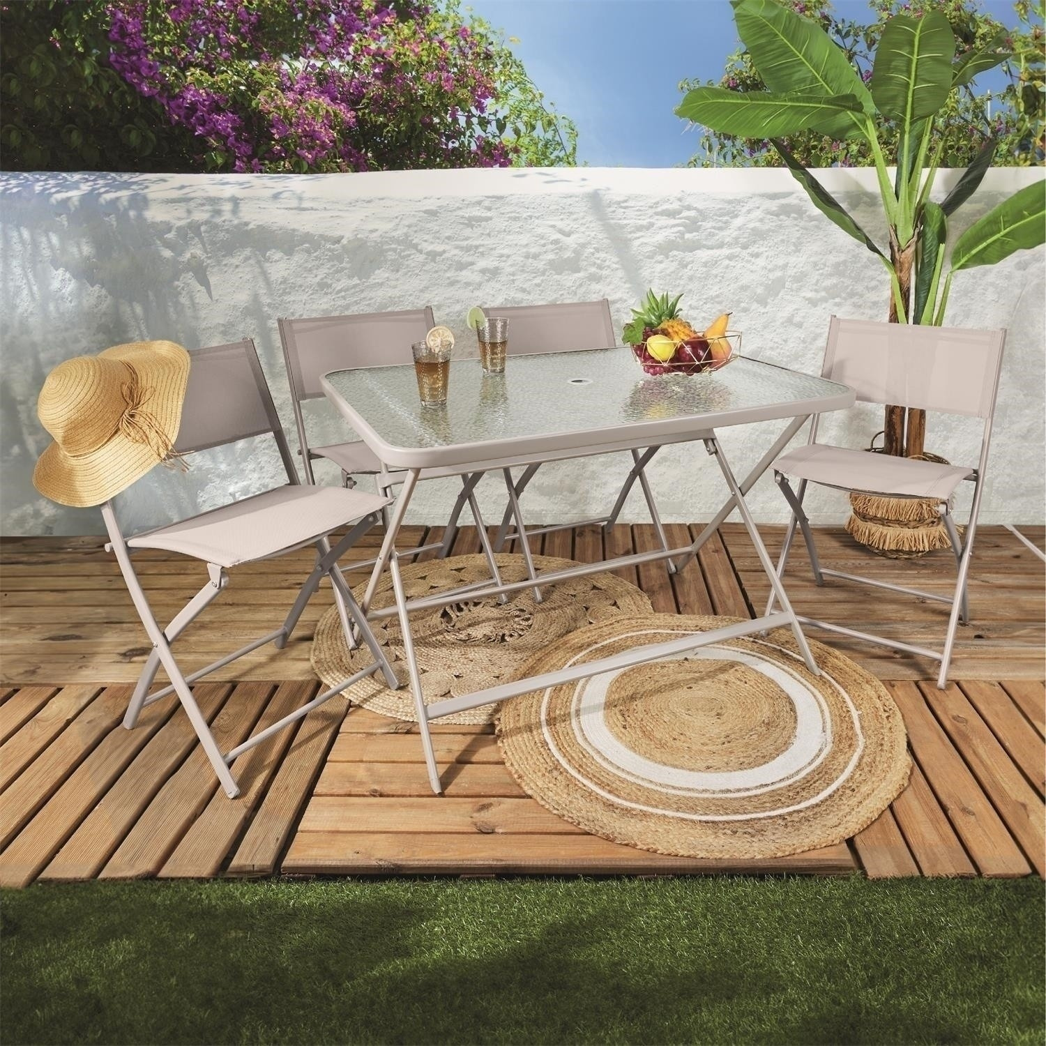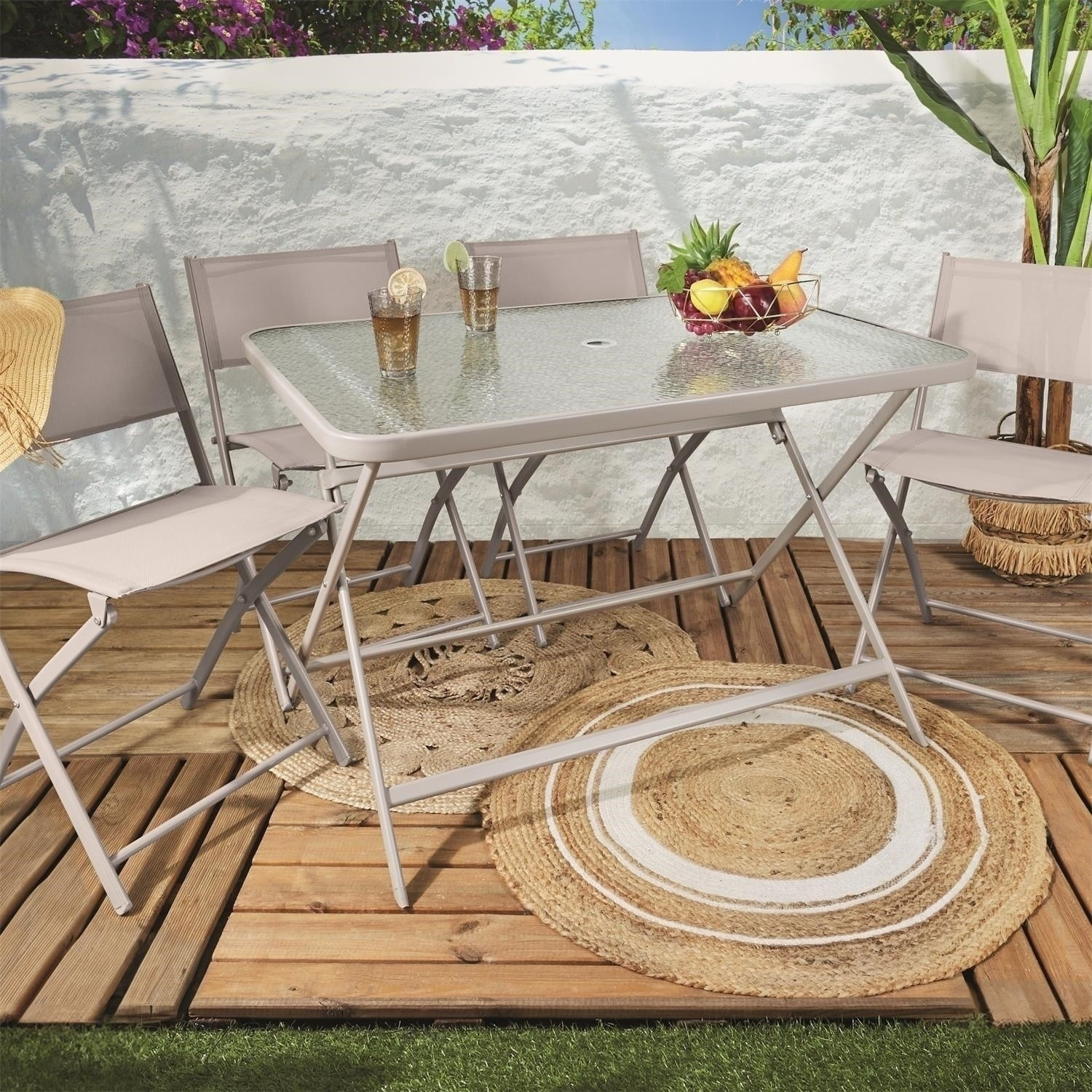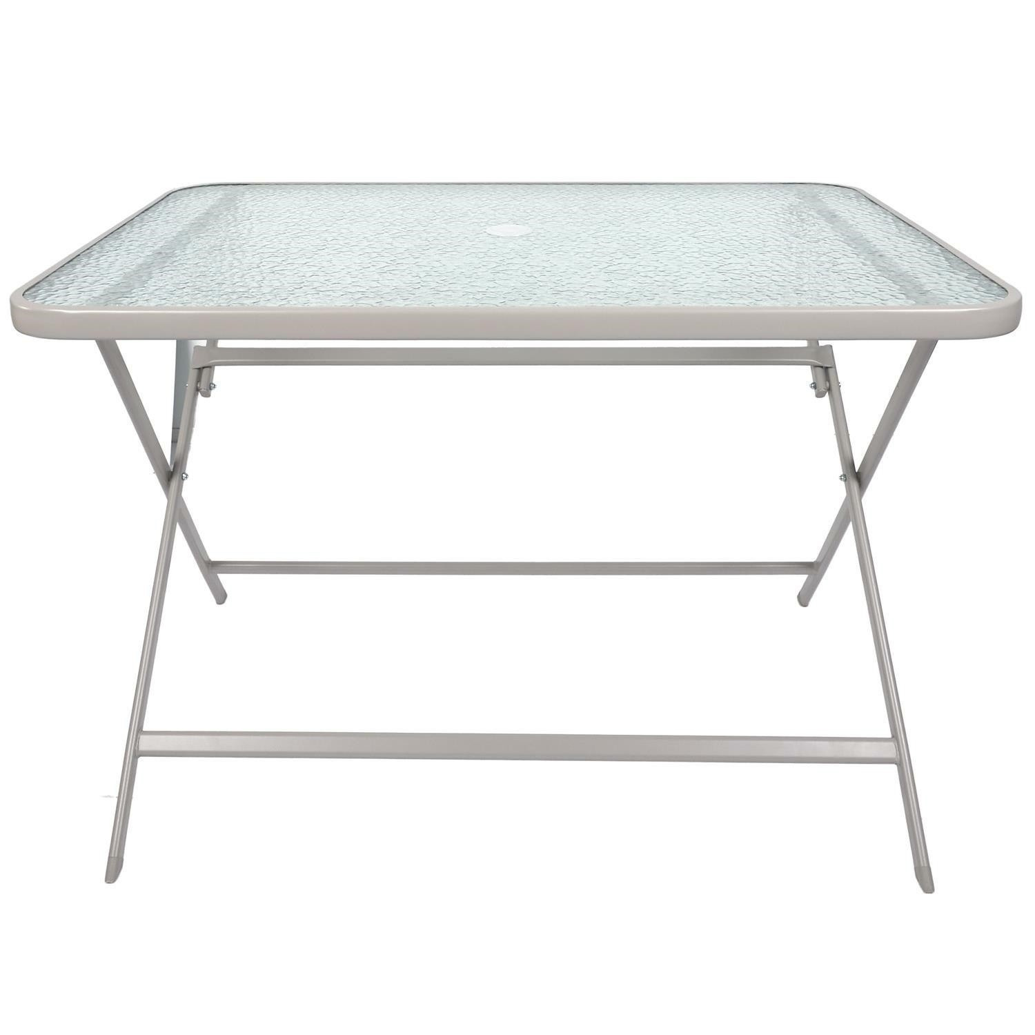 Skladací stôl Formentera s tvrdenou sklenenou doskou je ideálny nábytok na terasu. Obdĺžnikový záhradný stôl bez problémov pojme šesť osôb pri spoločnom stolovaní vonku. DĹŽKA PRODUKTU (CM) 110 VÝŠKA PRODUKTU (CM) 70 HĹBKA PRODUKTU (CM) 75 HMOTNOSŤ PRODUKTU (KG) 14,6 Materiál: sklo, PP, kov (oceľ) Pre vonkajšie použitie. Vyžaduje montáž Max. zaťaženie 50 kg