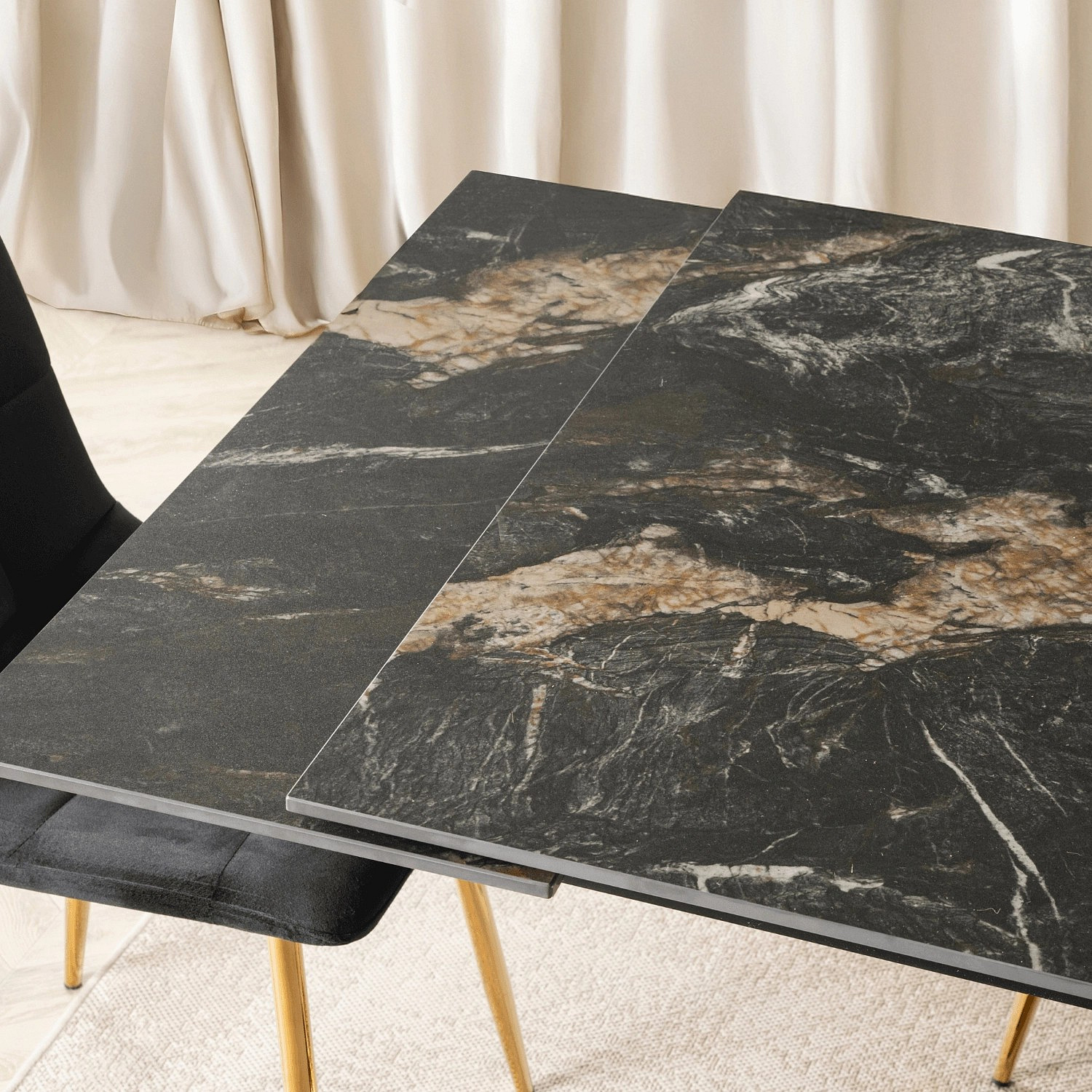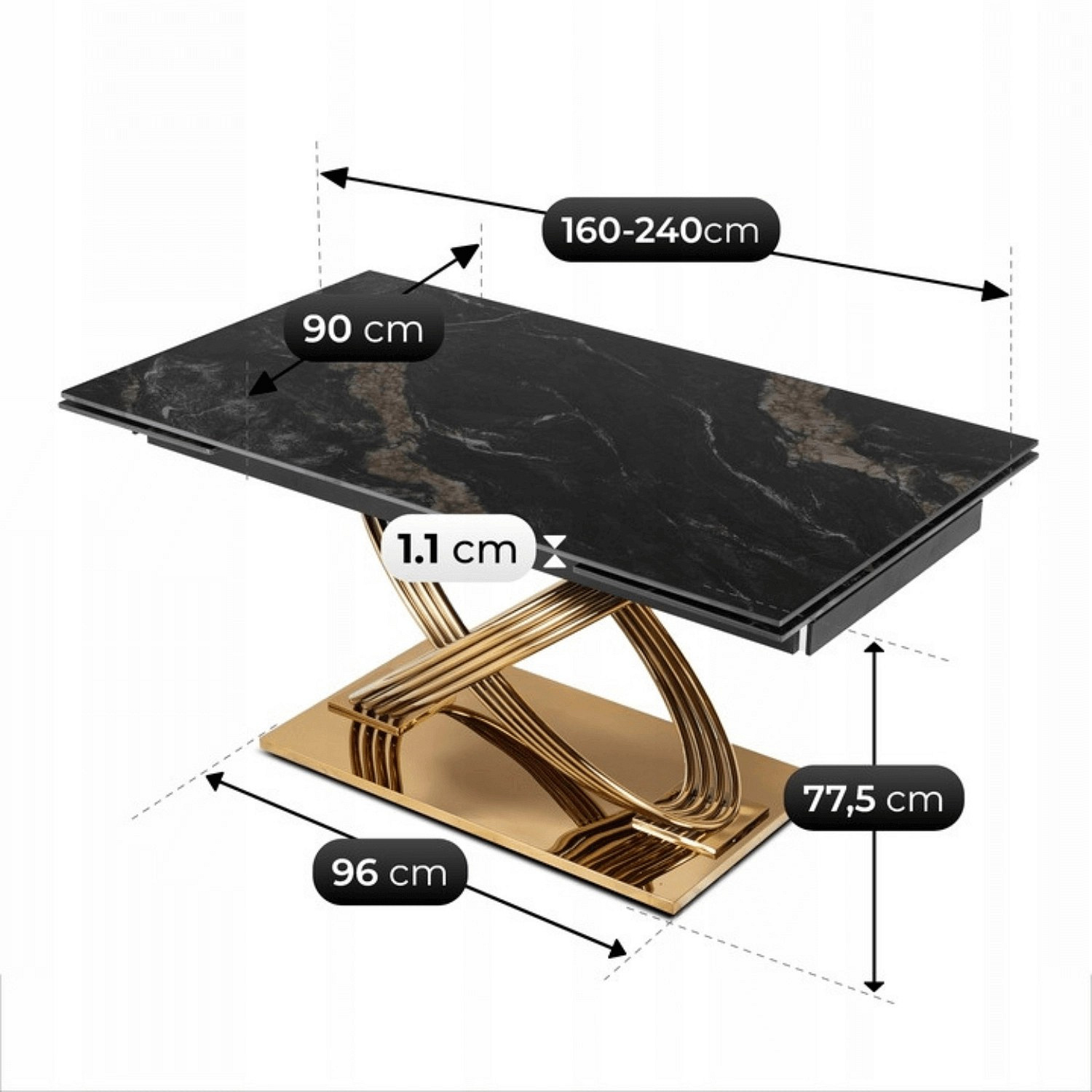 Stôl IBIZA Keramický Rozkladací 160-240 cm Čierny Mramor/Zlatý