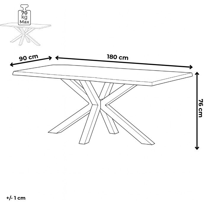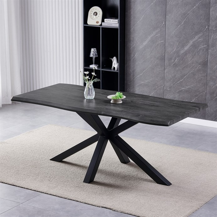 Stôl jedálenský, 180x90x75 cm, MDF doska, dekor sivý dub, kovová noha v tvare hviezdy, čierny lak