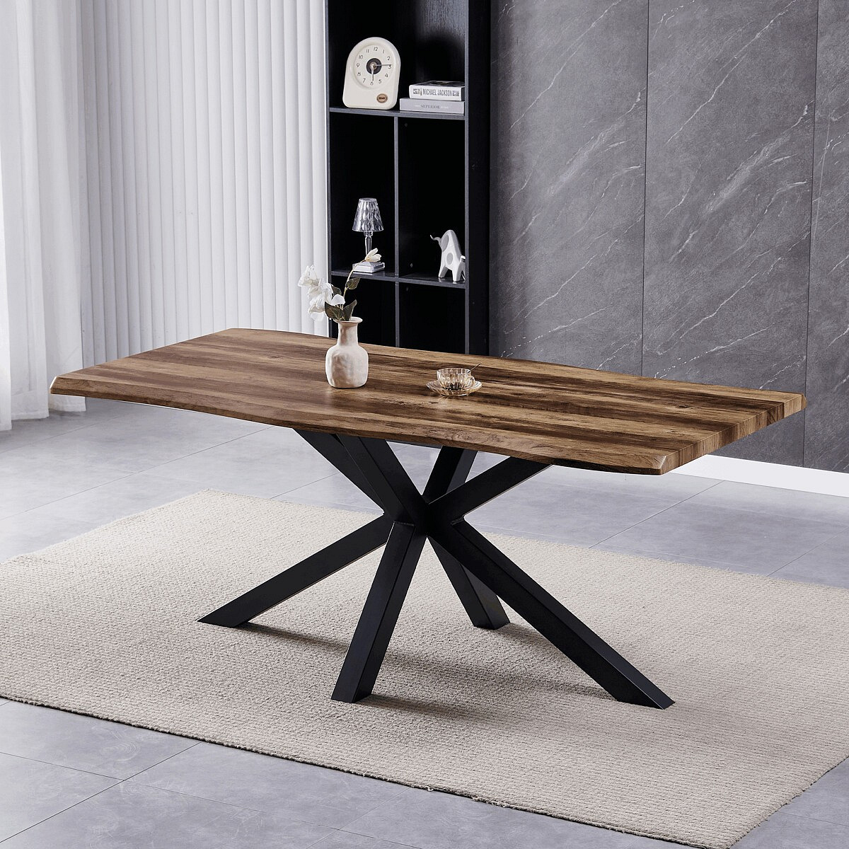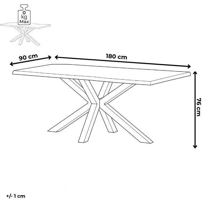 Stôl jedálenský, 180x90x75 cm, MDF doska, dekor staré drevo, kovová noha v tvare hviezdy, čierny lak
